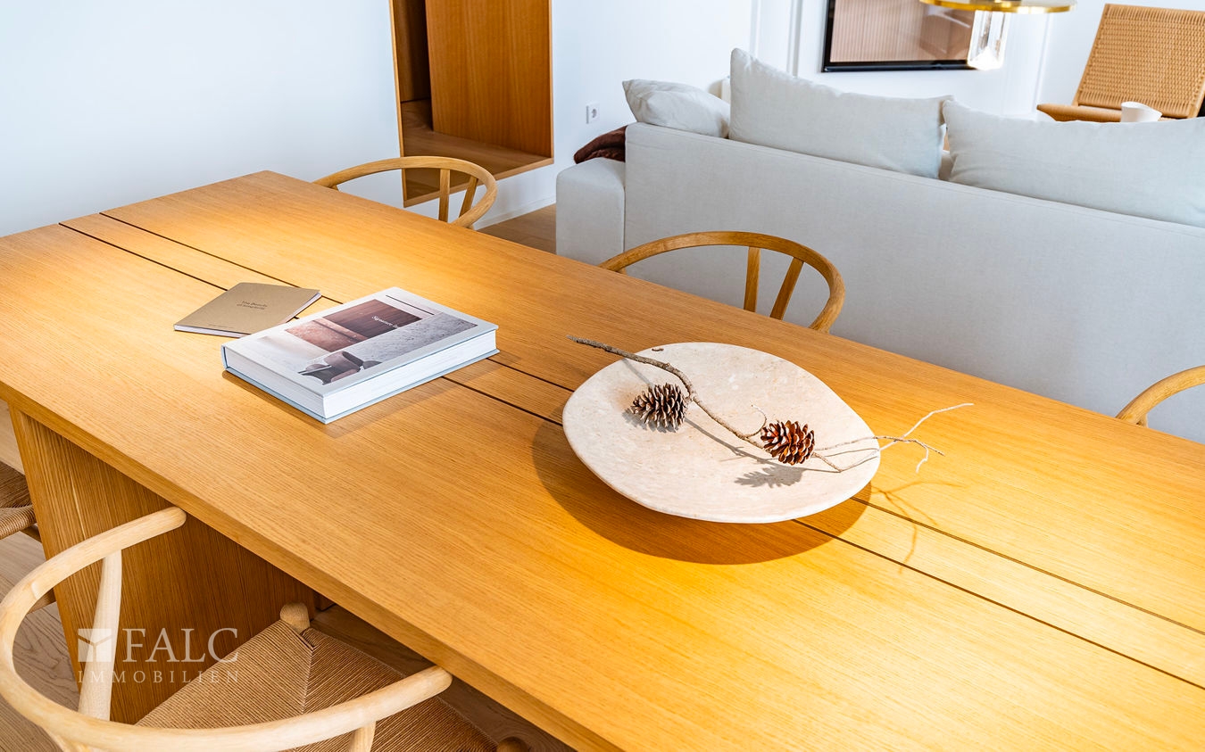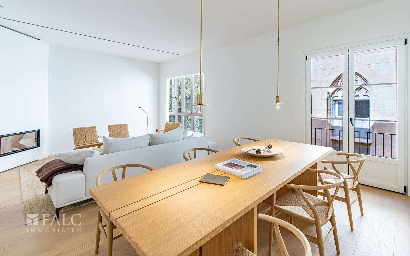 Bei der Renovierung im Jahr 2022 wurde großer Wert auf eine helle und offene Atmosphäre gelegt, welche die Großzügigkeit der Wohnung unterstreicht und zugleich harmonisch mit dem historischen Erbe des Gebäudes korrespondiert. Hohe Decken, großflächige Fenster, hochwertige Materialien und eine intelligente Raumaufteilung betonen den einzigartigen Charakter dieser Immobilie.