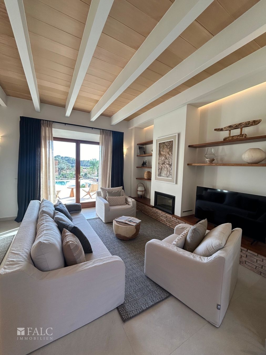 Diese wunderschöne Finca in Cas Concos befindet sich in einer ruhigen Lage und bietet einen herrlichen Blick auf die Berge und die umliegende mediterrane Landschaft. Auf einem Grundstück von ca. 19.500 m² wird dieses traumhafte Anwesen zum Sommer 2024 fertiggestellt. Elegante Linien und die Kombination aus Holz und Naturstein verleihen dieser prächtigen Finca ein aussergewöhnliches Design. Die hohen Decken und raumhohen Fenster schaffen eine helle und offene Atmosphäre.