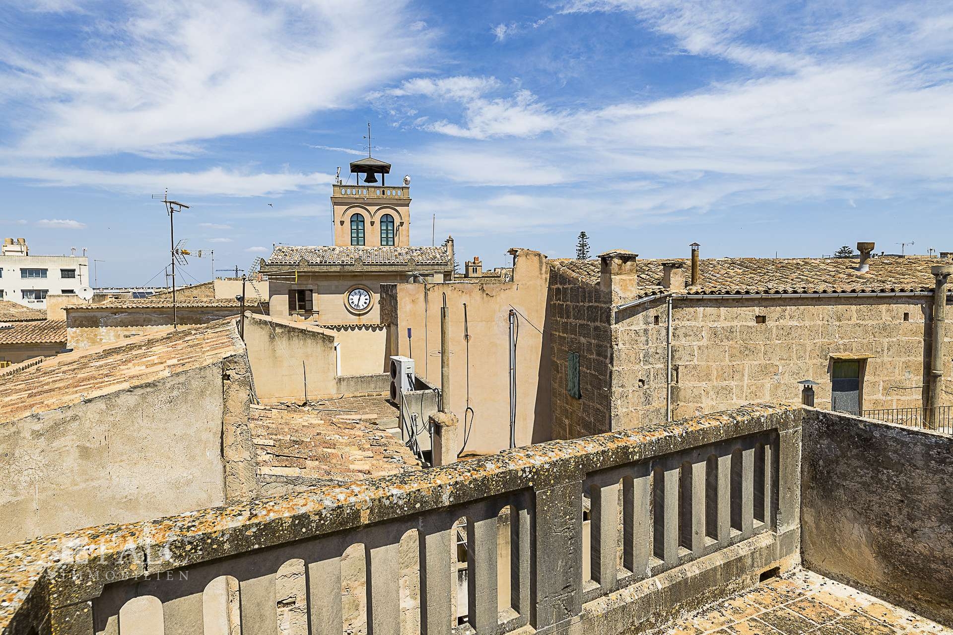 Ein besonderes Highlight ist die private Garage mit direktem Straßenzugang – eine Seltenheit im historischen Ortskern. Die zentrale Lage im lebendigen Dorf Santanyí bietet unmittelbare Nähe zu Wochenmärkten, Geschäften, Cafés, Restaurants und sämtlichen Einrichtungen des täglichen Bedarfs.
