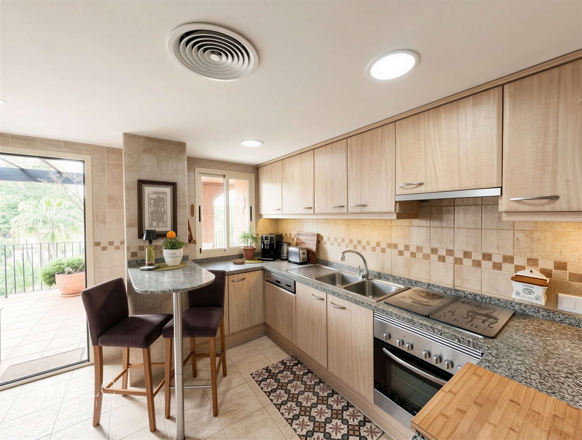 Für den täglichen Bedarf ist ein Supermarkt wie Spar in ca. 500 m erreichbar, weitere Einkaufsmöglichkeiten wie Eroski liegen in der näheren Umgebung. Ein Paketshop ist ebenfalls in der Nähe, sodass Erledigungen schnell und bequem gelingen.