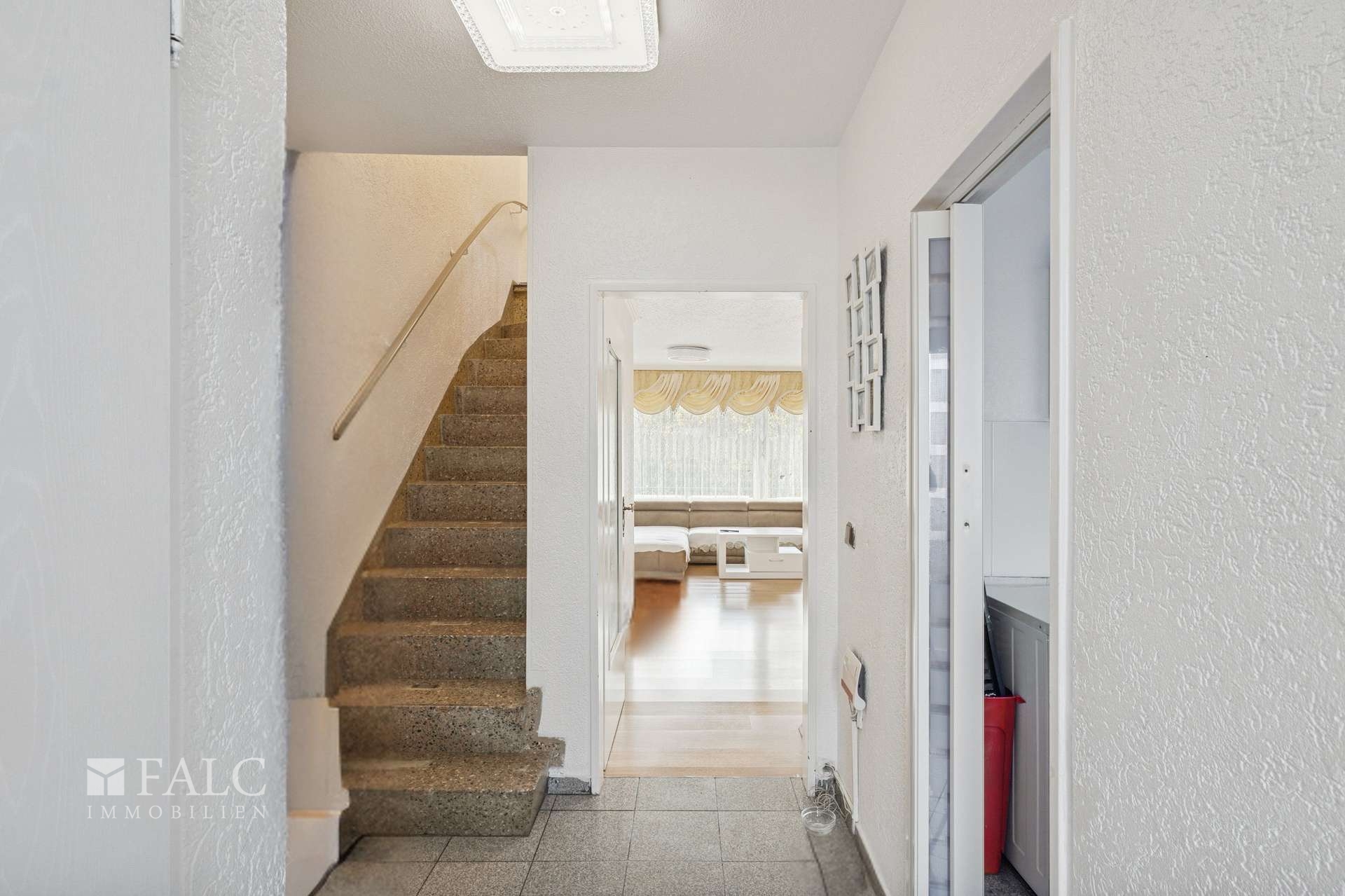 Beim Betreten dieser großzügigen Maisonette-Wohnung mit 101 m² Wohnfläche in Hochparterre werden Sie von einem einladenden Flur empfangen, der den Zugang zu den verschiedenen Bereichen des Erdgeschosses ermöglicht. Direkt zur Linken befindet sich das Gäste-WC, ein praktisches Feature für Besucher.