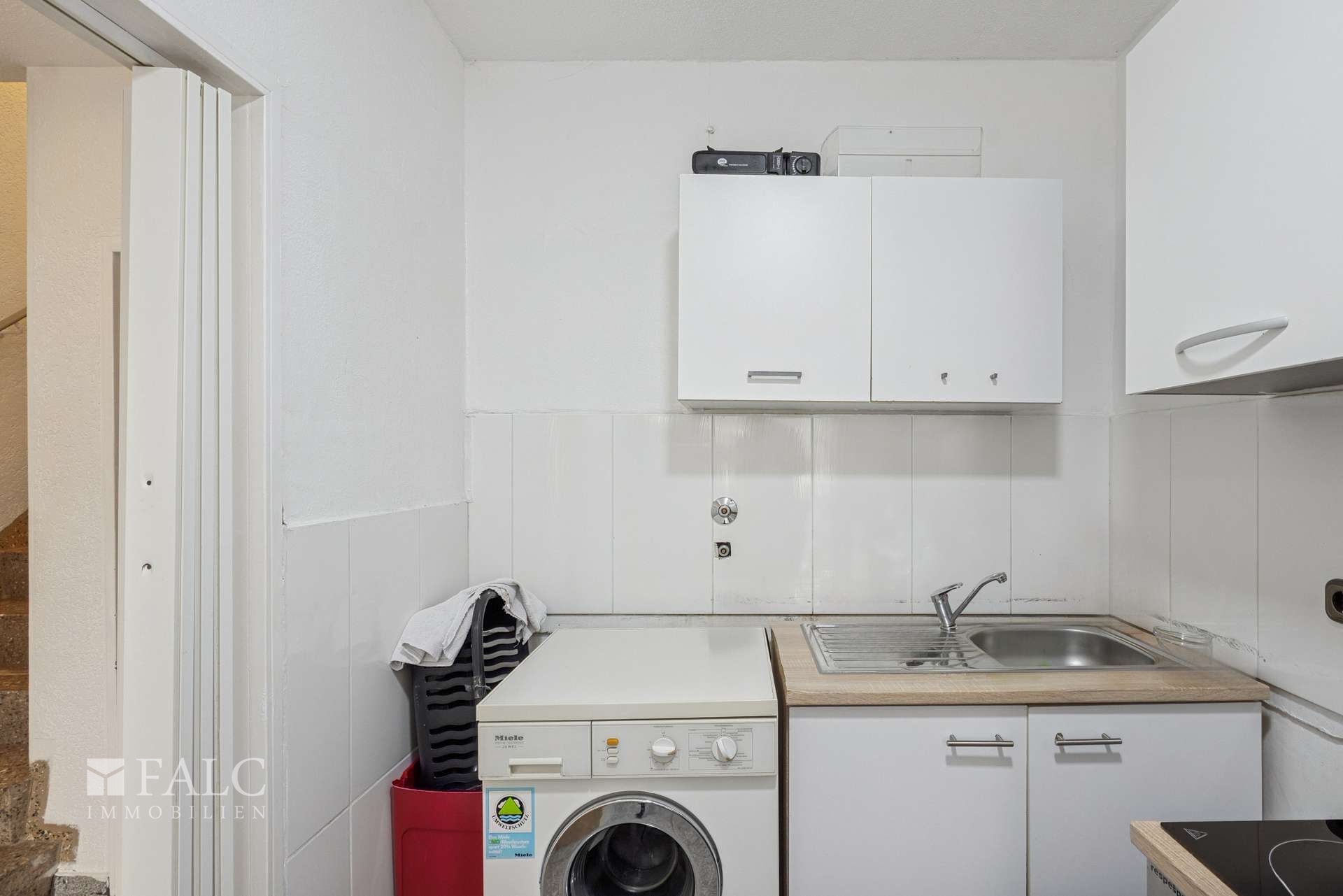 Die Küche ist kompakt und funktional gestaltet, ausgestattet mit ausreichend Stauraum. Sie bietet alles, was Sie für die Zubereitung von Mahlzeiten benötigen.