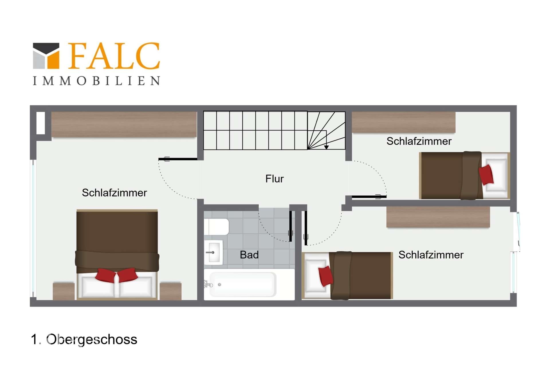 Im Obergeschoss erwarten Sie drei weitere Schlafzimmer, die flexibel genutzt werden können. Eines der Highlights ist der Zugang zum Balkon, der von zwei der Schlafzimmer aus erreichbar ist. Hier können Sie entspannte Stunden im Freien genießen.