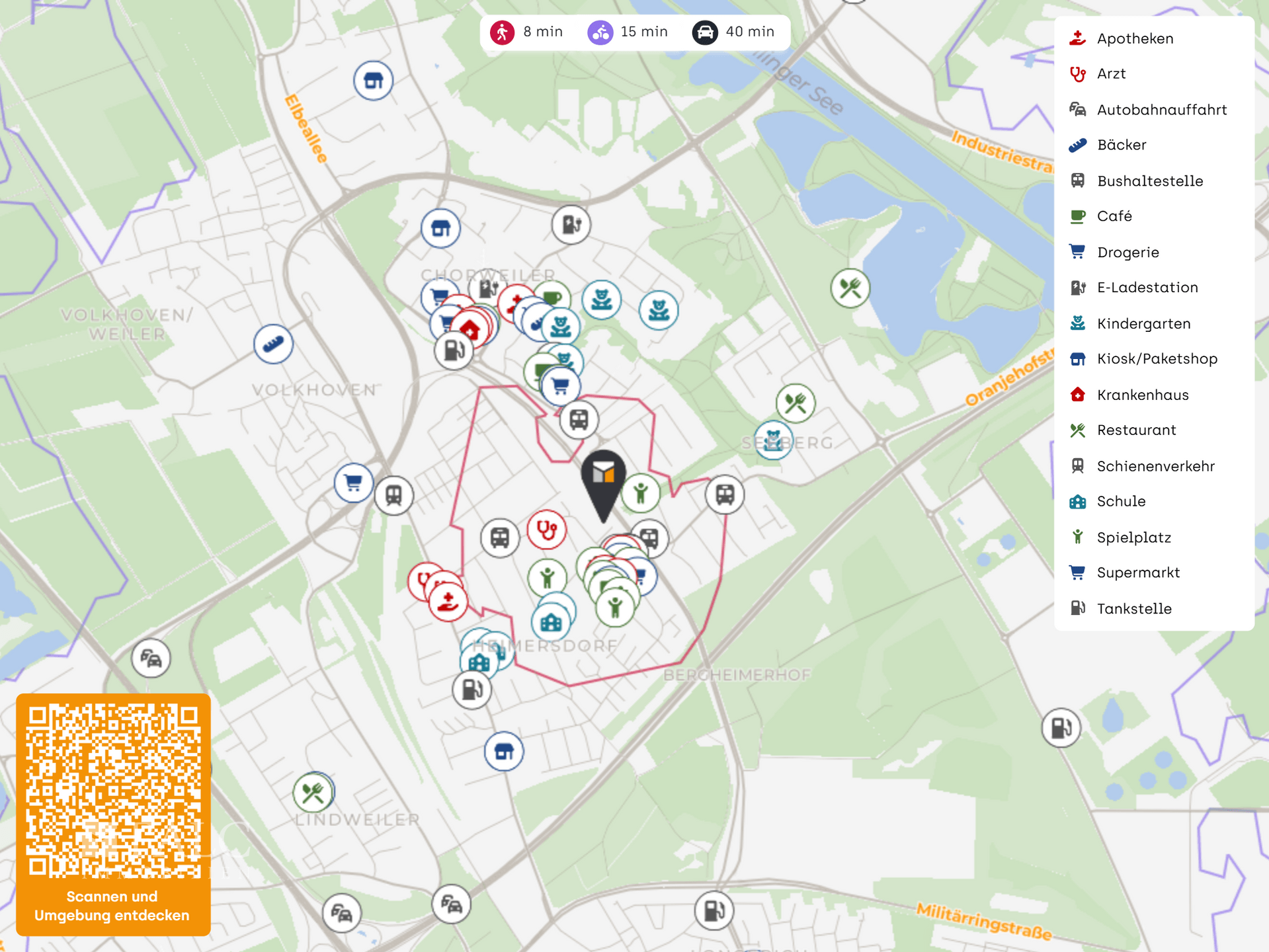 Die Lage bietet zudem eine gute Balance zwischen städtischem Leben und ruhigen Rückzugsorten. Mit einem hohen Index für individuelle Mobilität und einer guten Nahversorgung ist diese Immobilie ideal für all jene, die Wert auf eine gut ausgebaute Infrastruktur legen.