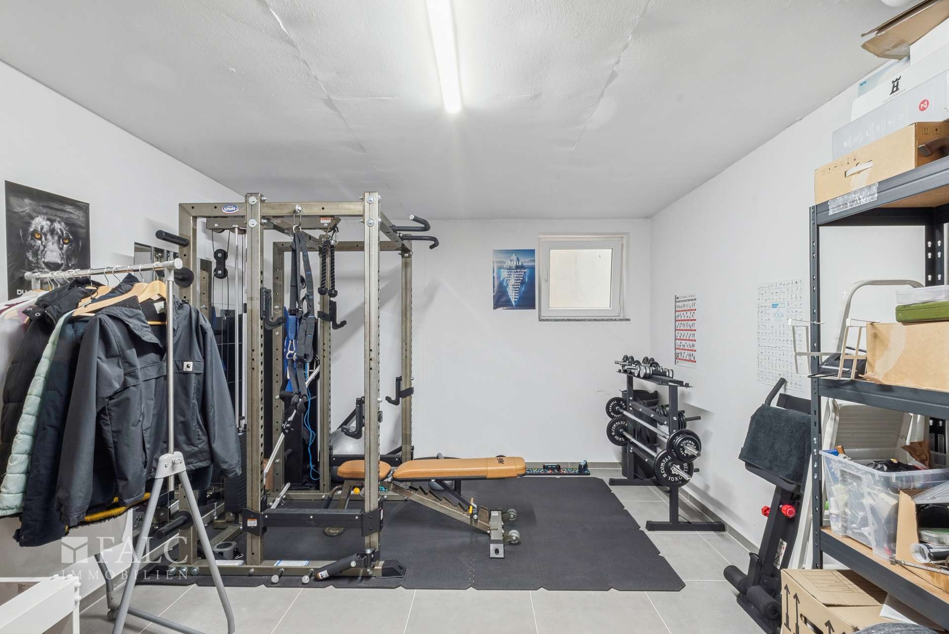 Die Terrasse bietet einen angenehmen Außenbereich – ideal zum Durchatmen oder für einen entspannten Abend. Im Keller steht zusätzlicher, ausgebauter Raum zur Verfügung, ideal für Sportequipment oder saisonale Gegenstände.