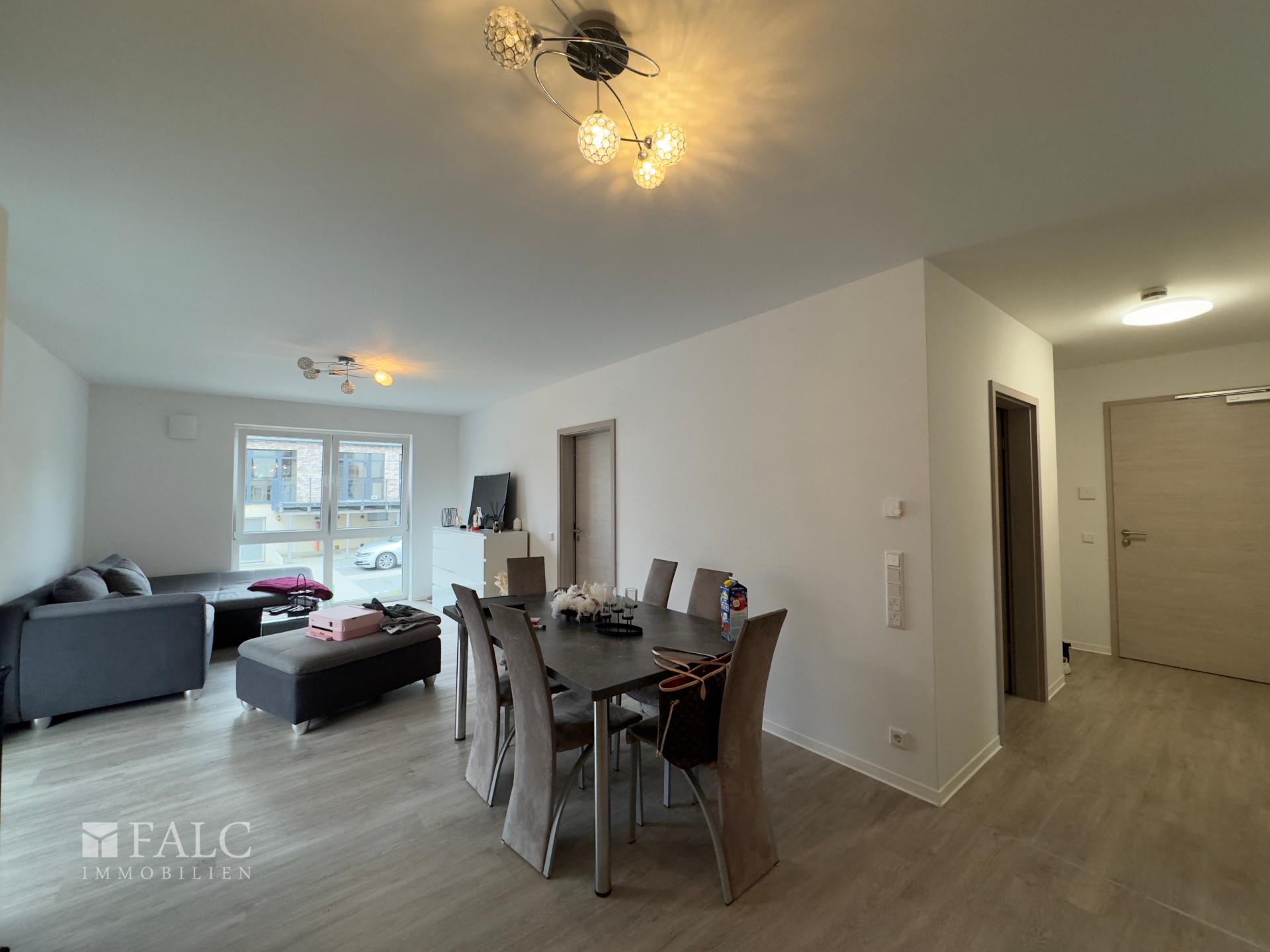 Beim Betreten der Wohnung empfängt Sie ein freundlich gestalteter Eingangsbereich, der nahtlos in den offenen Wohn- und Essbereich übergeht. Großzügige Fensterflächen sorgen für ein lichtdurchflutetes Ambiente und schaffen ein modernes, einladendes Wohngefühl.