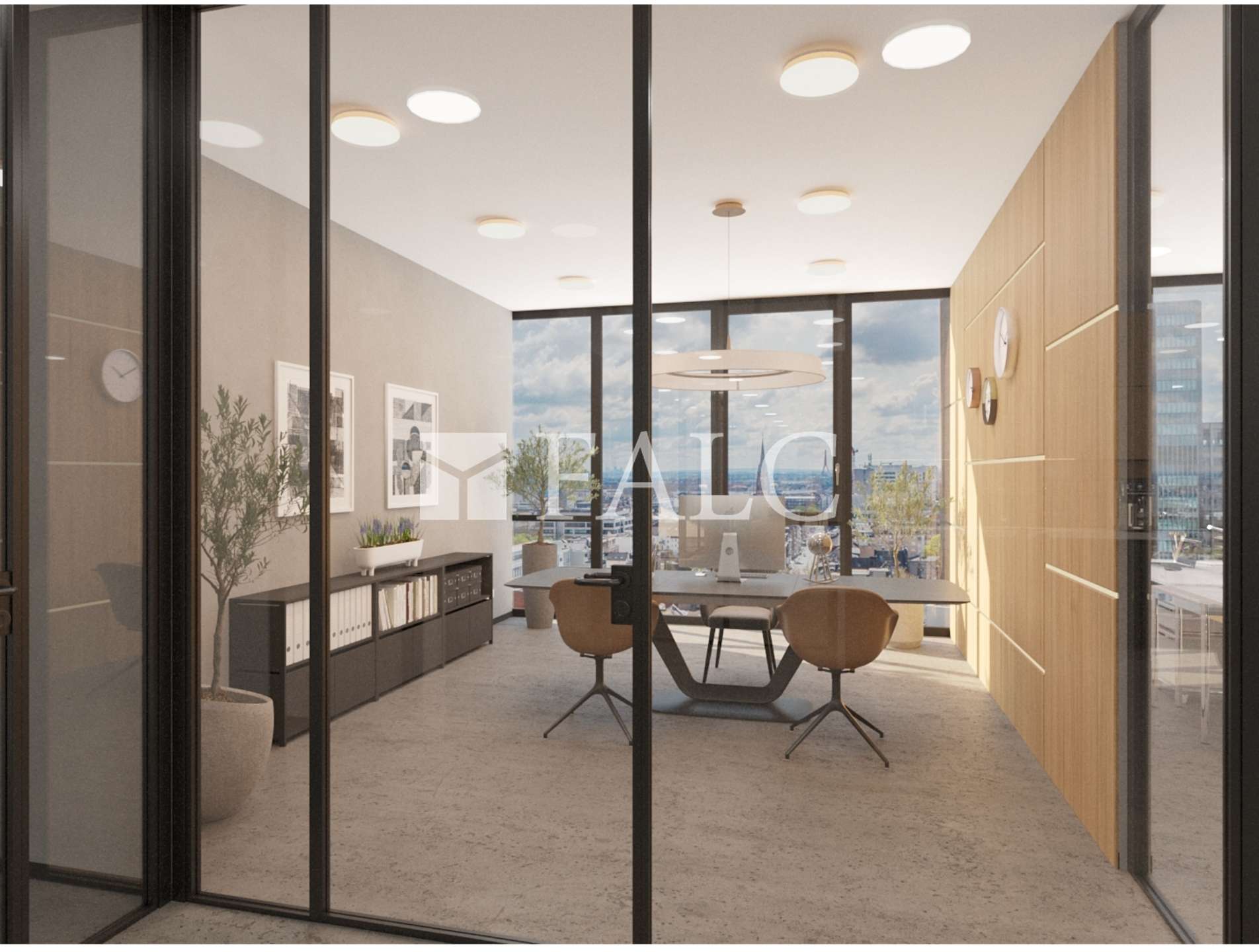 Die Büroetage ist großzügig, lichtdurchflutet und so konzipiert, dass sie sowohl als Ganzes als auch in Teilflächen genutzt werden kann. Eine flexible Unterteilung in etwa hälftige Einheiten oder viertel Einheiten ist in der Planung vorgesehen, sodass die Flächen optimal an die individuellen Bedürfnisse der Mieter angepasst werden können. Damit eignet sich das Gebäude gleichermaßen für größere Unternehmen, die eine gesamte oder mehrere Etage/n exklusiv nutzen möchten, wie auch für kleinere Firmen, die von der repräsentativen Adresse profitieren wollen.