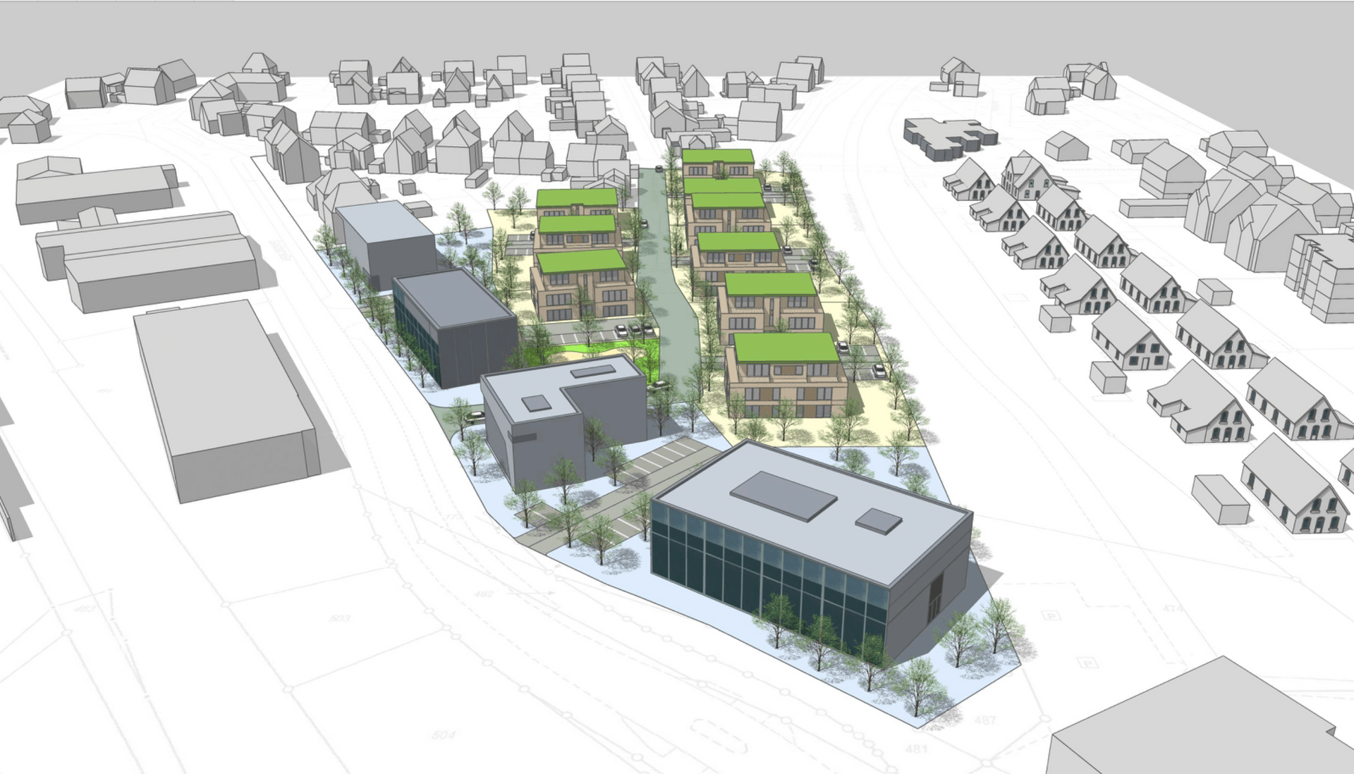 Zurzeit ist eine Bebauung mit zwei Vollgeschossen plus Staffelgeschoss im Bereich des Wohn- und Sozialbaus vorgesehen.