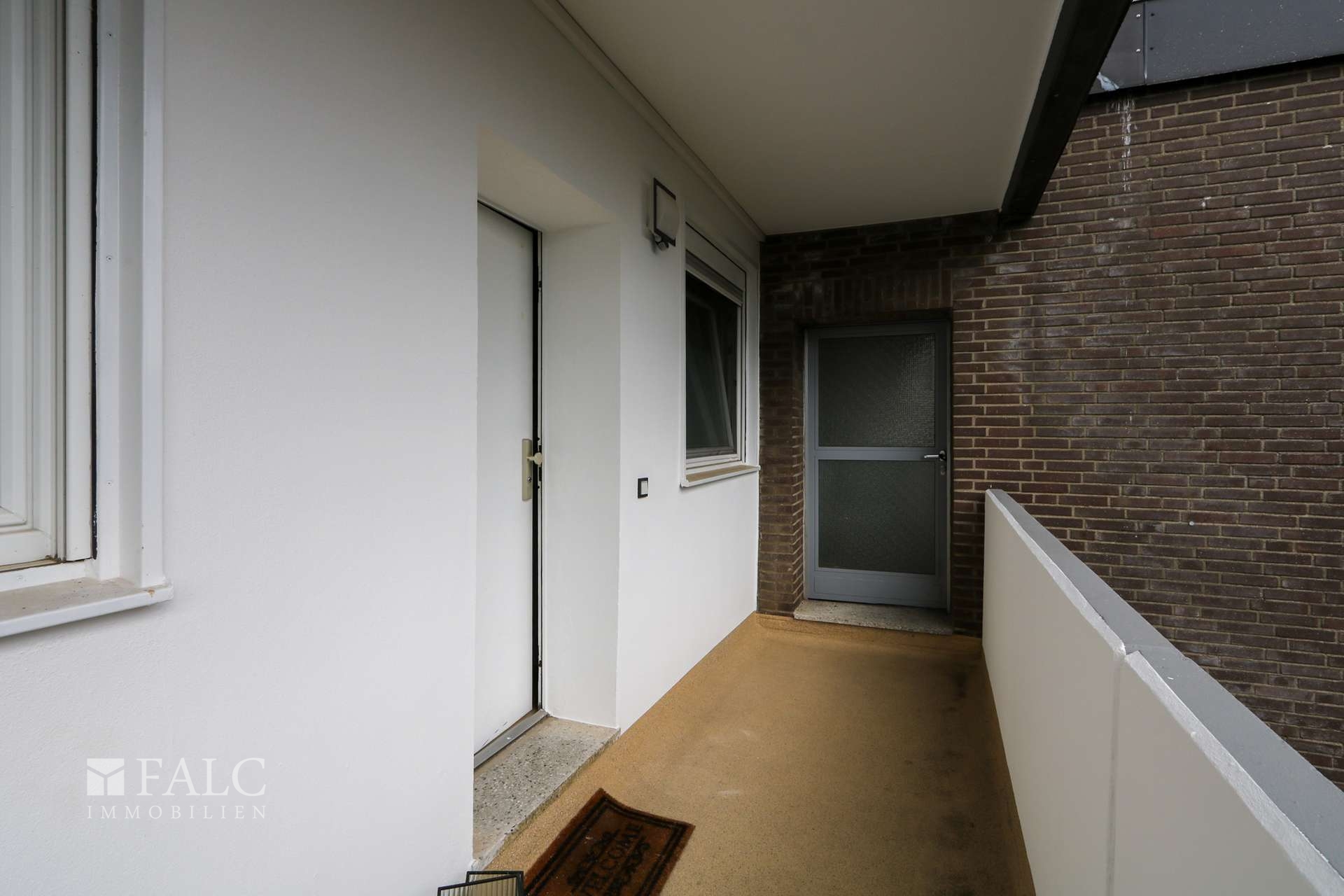 Vom Treppenhaus geht es über einen "Laubengang" direkt zur Wohnungstür. Von der Eingangsdiele gelangt man in die Küche und das sehr geräumige Wohn-/Esszimmer mit Zugang zu dem ca. 4 m² großen, nach Westen ausgerichteten Balkon. Vom Wohn-/Esszimmer gelangt man über die Diele in das Bad, das Schlafzimmer und in die Küche. Die dort befindliche Einbauküche ist nicht Bestandteil des Kaufangebotes. Sie kann aber nach Abstimmung mit dem Verkäufer zusätzlich erworben werden.