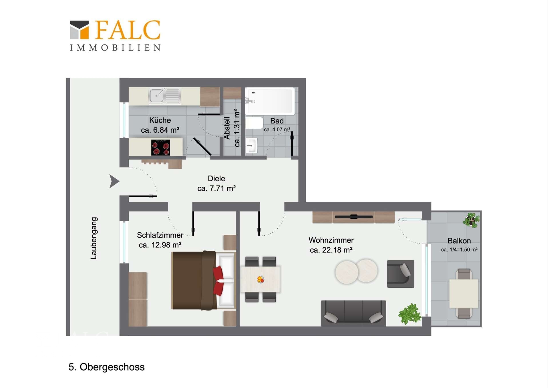Diese sehr schöne ca. 57 m² große Wohnung verfügt über 2 Zimmer, Küche, Diele, Bad und befindet sich auf der fünften Etage einer gepflegten Wohnanlage.