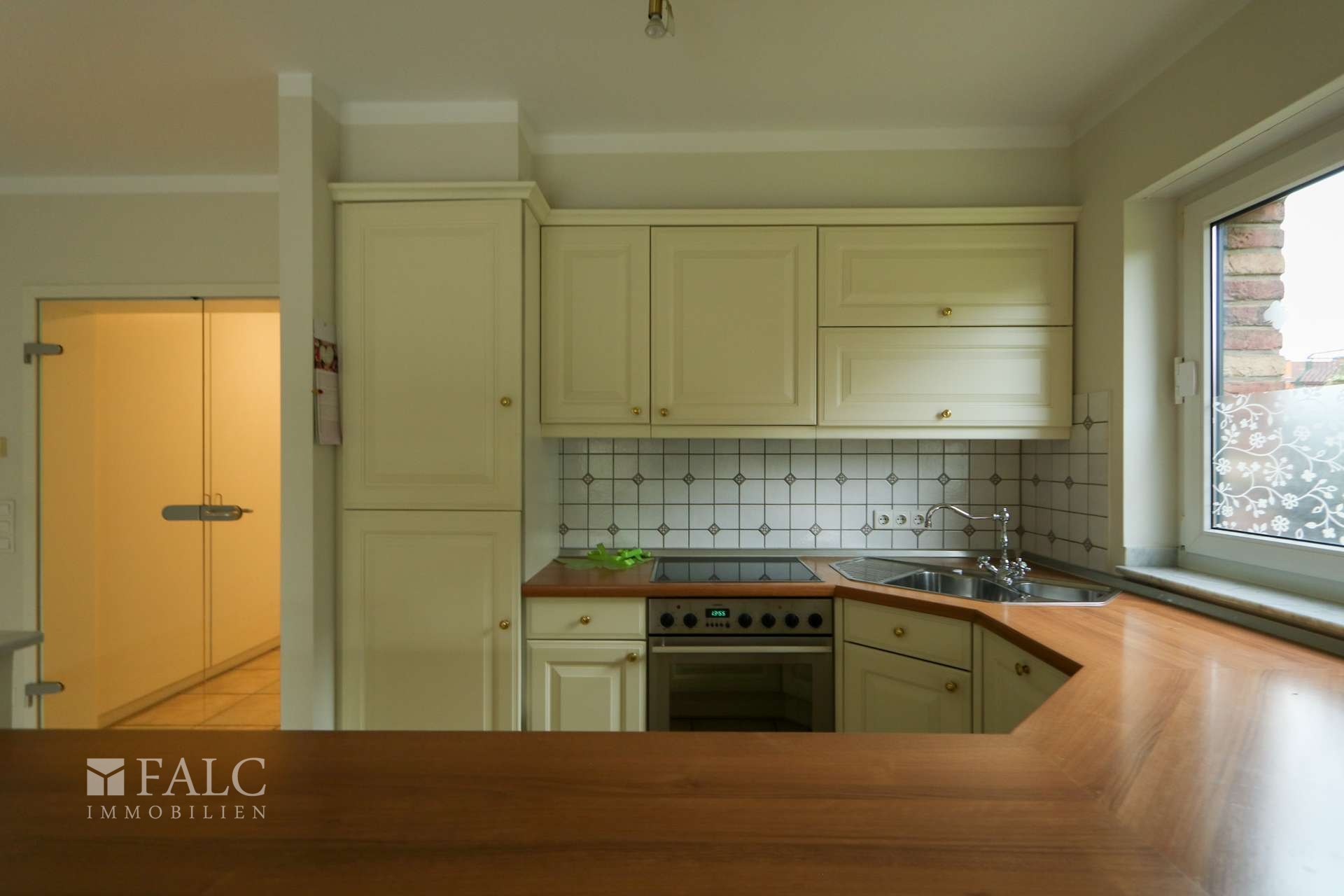 Küchenzeile: Helle Fronten, Einbauschränke, Spüle mit Mischbatterie, eingebautes Cerankochfeld, Backofen, Spülmaschine, Kühlschrank und Tiefkühlschrank. Die Einbauküche ist bereits im Kaufpreis enthalten.