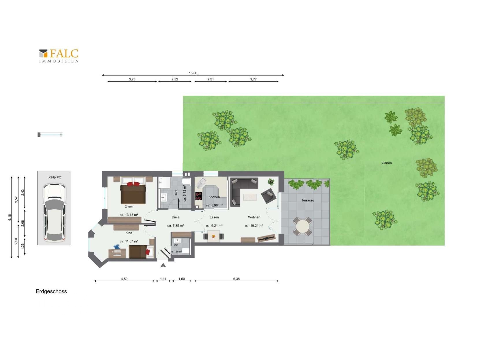 Terrasse: großformatige Betonsteinplatten. Im Garten steht ein Geräteschuppen, wo Sie Ihre Gartenwerkzeuge perfekt unterbringen können. TV: Kabelanschluss. Internet: gemäß Recherche sind hier 1.000 MBit/s im Download und 50 MBit/s im Upload möglich. Kellergeschoss: separater Kellerraum (ca. 4 m²) für die Wohnung. Waschraum: zur gemeinsamen Nutzung, Aufstellmöglichkeiten für Waschmaschine und Trockner, mit eigenen Verbrauchszählern (Strom/Wasser) Tiefgarage: Zufahrtsrampe mit Betonpflaster, Ein/Ausfahrtstor elektrisch gesteuert. PKW-Außenstellplatz mit Betonpflaster, seitlich neben dem Haus als Sondernutzungsrecht.