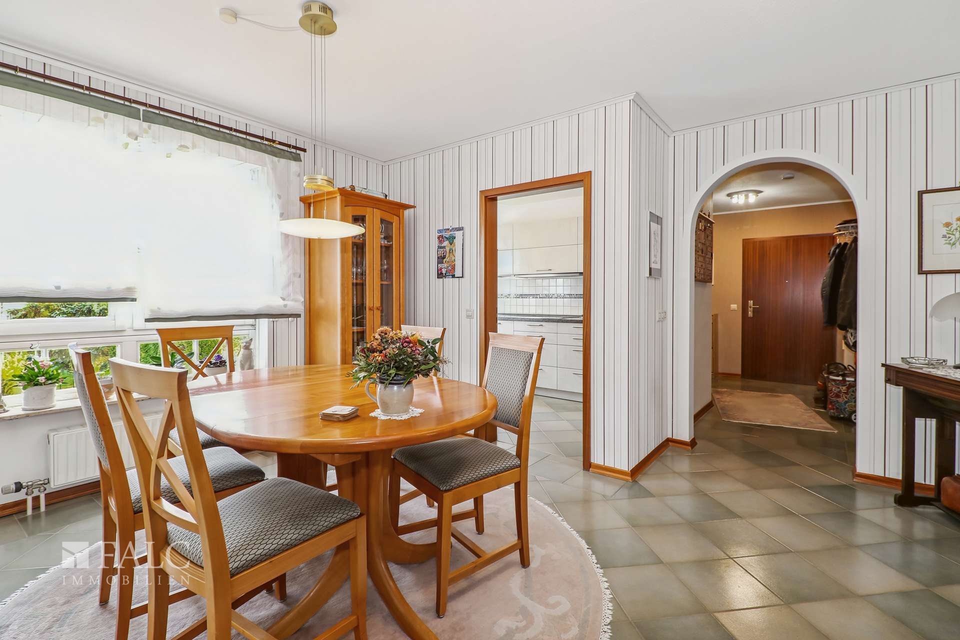 - Abgeschlossener Küchenbereich mit Einbauküche und angrenzendem Essplatz