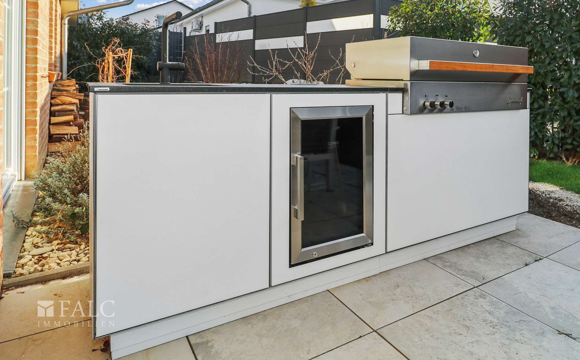 Winterfeste Premium Outdoorküche, mit Grill, Kühlschrank und Spültisch