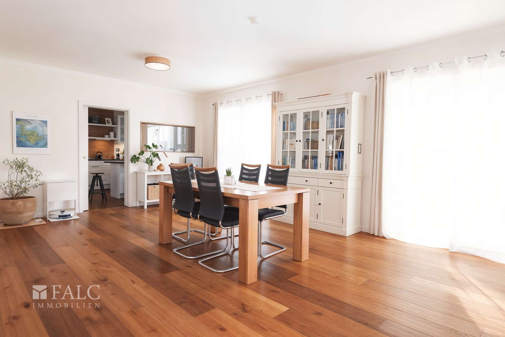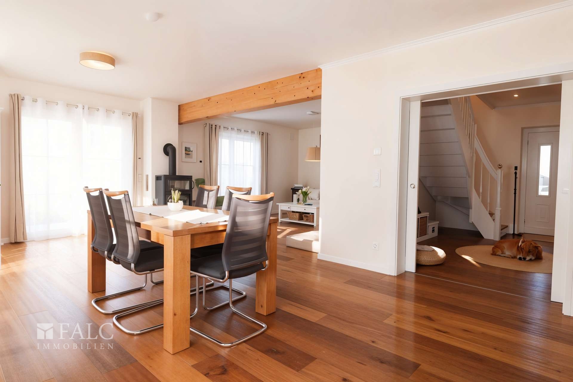 - hell und großzügig gestalteter Wohn- und Essbereich mit Doppelflügel-Terrassentüren, hochwertiger Schwedenofen mit Backfunktion und Cerankochfeld