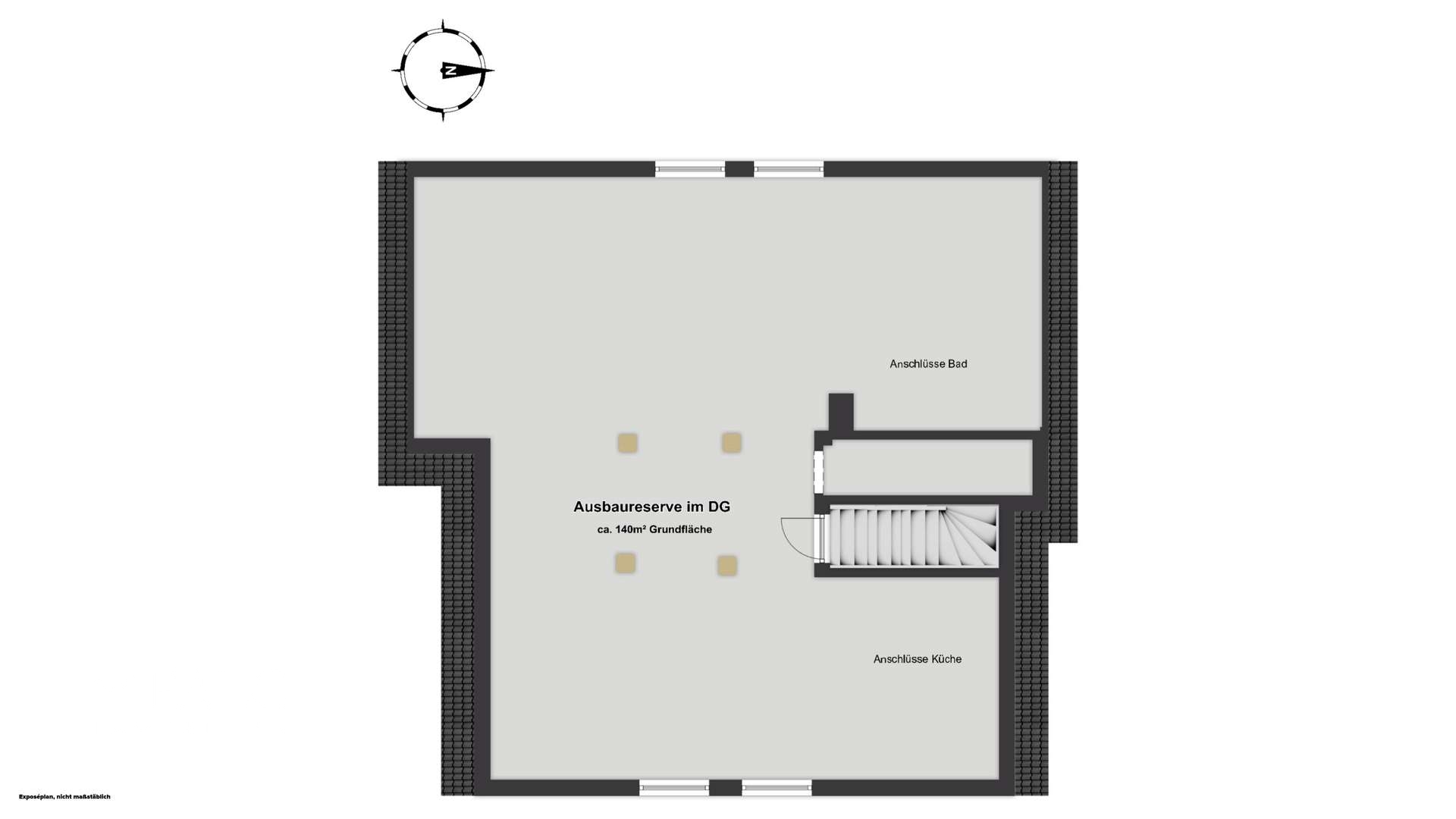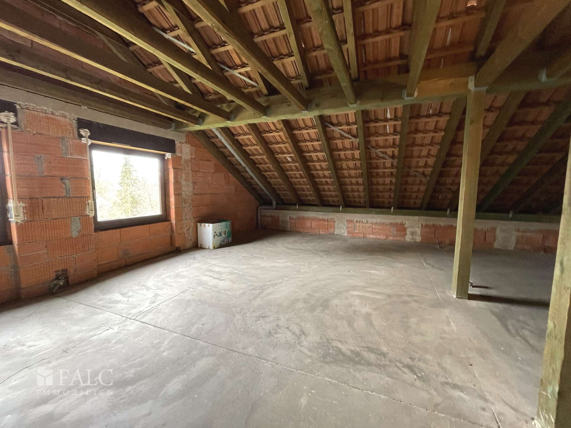 Im Dachgeschoss stehen verschiedene Ausbaumöglichkeiten zur Verfügung, da die Ebene aktuell noch nicht ausgebaut ist und damit viel Spielraum für individuelle Wohnideen bietet. Denkbar ist die Schaffung einer separaten Wohneinheit mit Küche, Bad sowie einem Wohn- und Essbereich und Schlafzimmer, ebenso eignet sich die Fläche als großzügiges Studio, Homeoffice oder Hobbybereich. Versorgungsleitungen für Wasser, Abwasser, Strom und Heizrohre sind bereits vorhanden, auch ist der Bodenestrich schon verlegt, was eine solide Grundlage für die weitere Planung schafft. Mit einer Grundfläche von ca. 110 m² lässt sich hier zusätzlicher Wohnraum entwickeln, der sich flexibel an unterschiedliche Lebensphasen anpassen kann. Ein absolutes Ass im Ärmel für Ihre Zukunftsplanung!