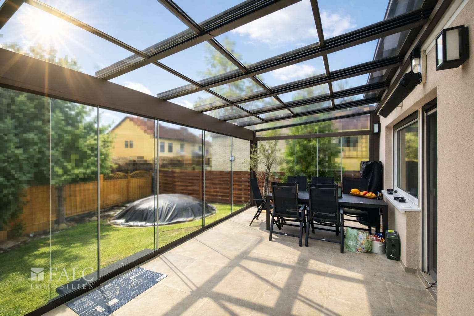 - Wintergarten mit großflächiger Verglasung und Schiebeelementen