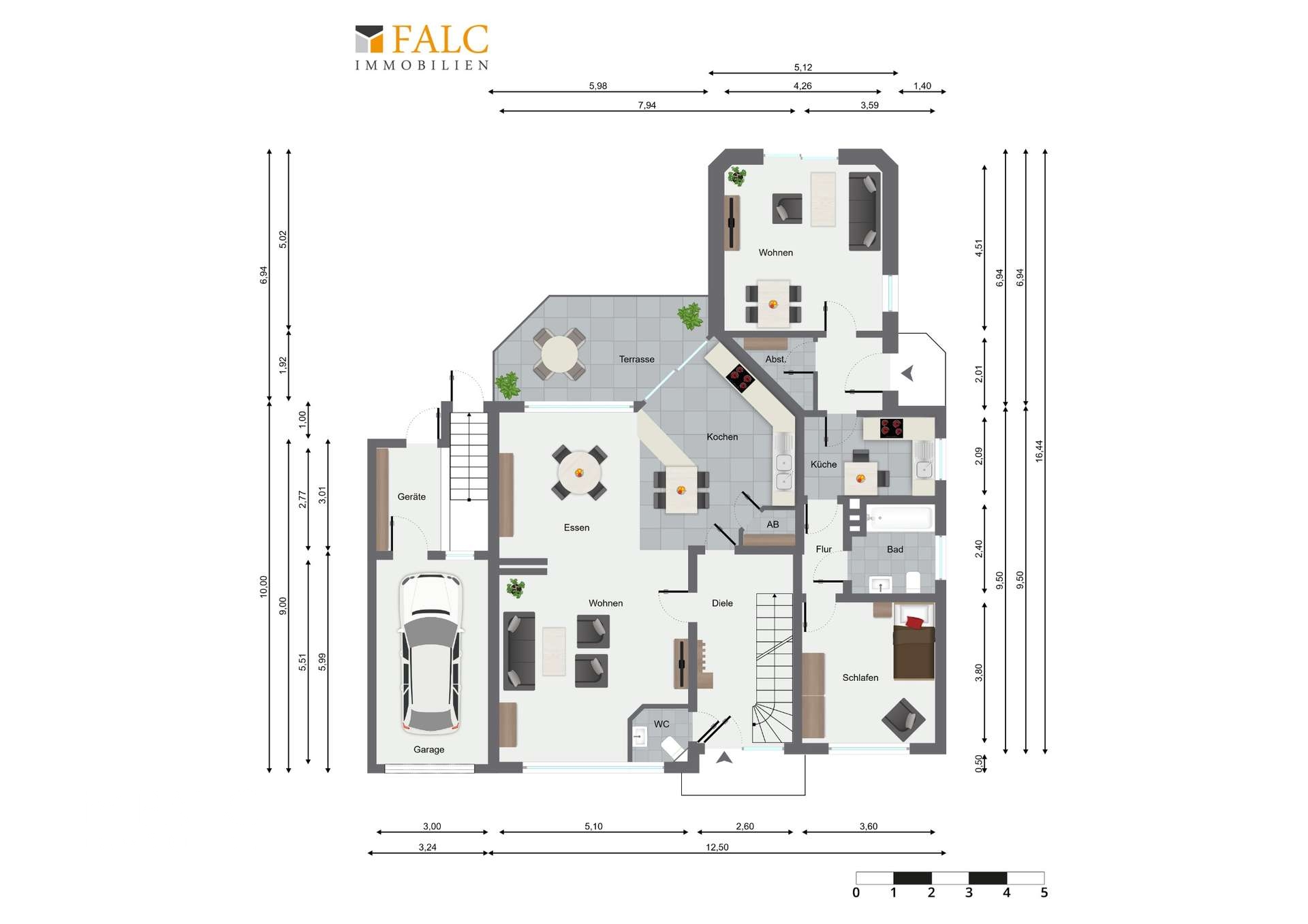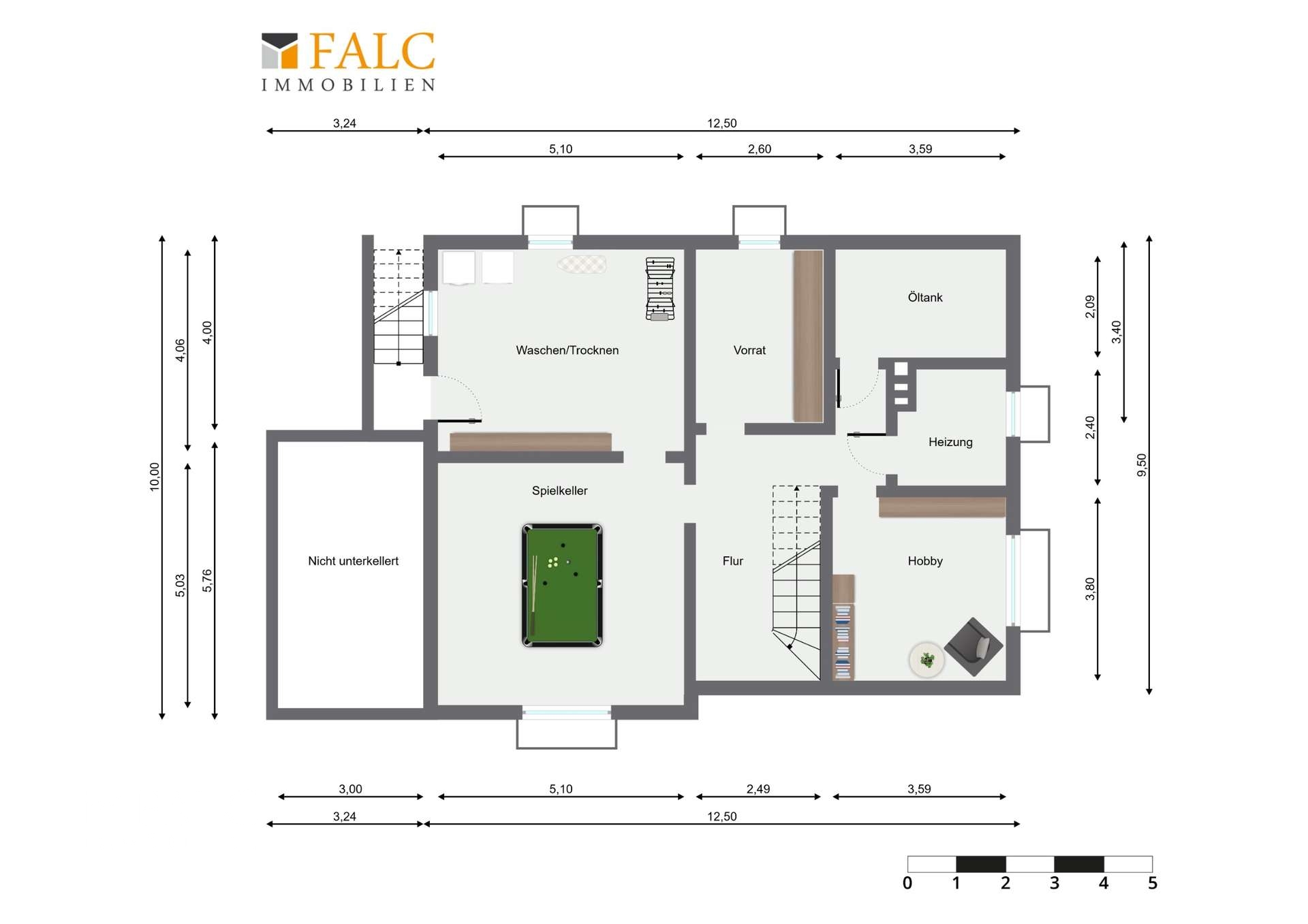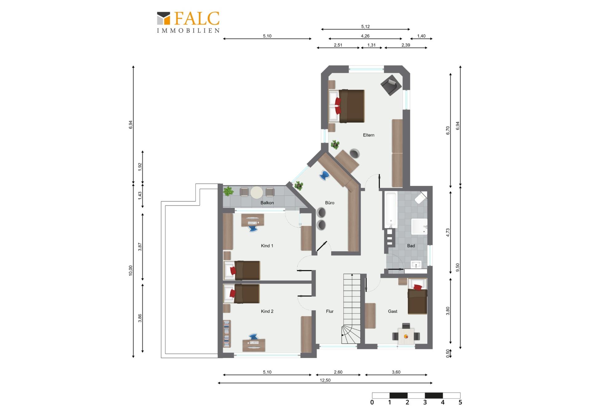Die Abbildungen dienen ausschließlich der veranschaulichenden Darstellung eines möglichen modernisierten Zustands der Räumlichkeiten. Die Grundrisse, Raumzuschnitte und Größen entsprechen dem tatsächlichen Bestand, während Ausstattungsdetails, Oberflächen und Einrichtungsbeispiele abweichen können.