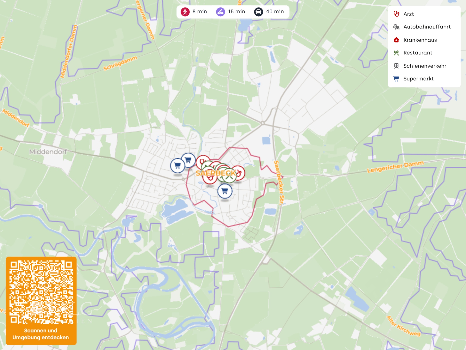 Die Lage überzeugt durch kurze Wege und eine alltagstaugliche Infrastruktur in einem gewachsenen Wohnumfeld von Saerbeck. Besonders familienfreundlich: Das Schulzentrum befindet sich praktisch um die Ecke, ebenso mehrere Bushaltestellen, die in wenigen Gehminuten erreichbar sind und eine bequeme Verbindung innerhalb des Ortes und in die Umgebung ermöglichen.