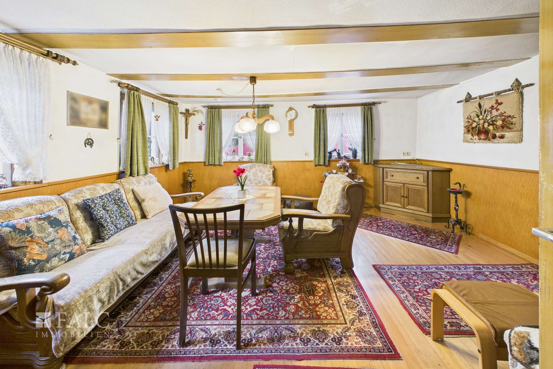 Die Küche, die sich ebenfalls im Erdgeschoss befindet, bietet ausreichend Platz für eine große Familie und ist der ideale Ort für gesellige Kochabende. Angrenzend an die Küche finden Sie das Esszimmer, das mit seinem traditionellen Ambiente zu gemeinsamen Mahlzeiten einlädt.
