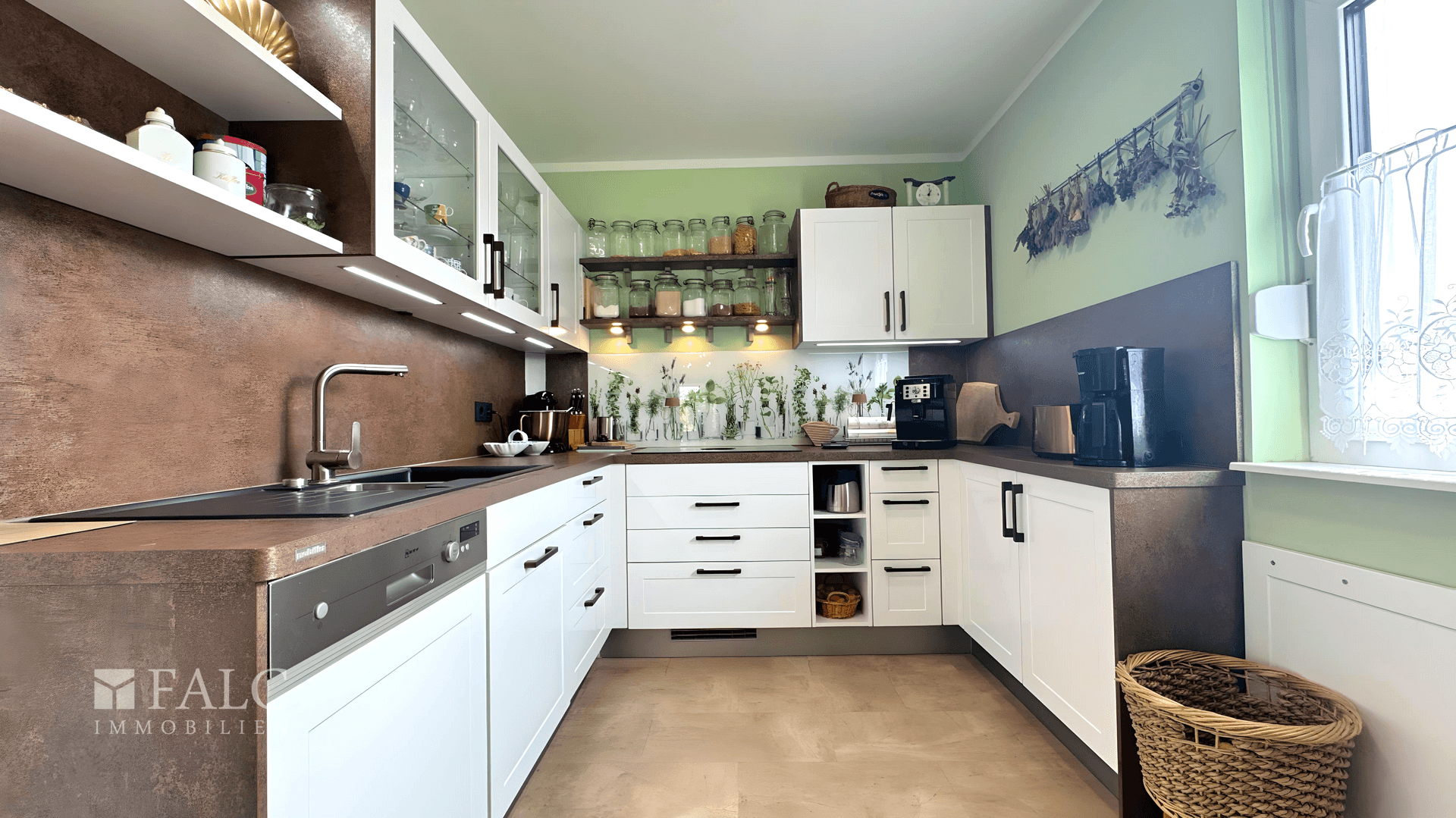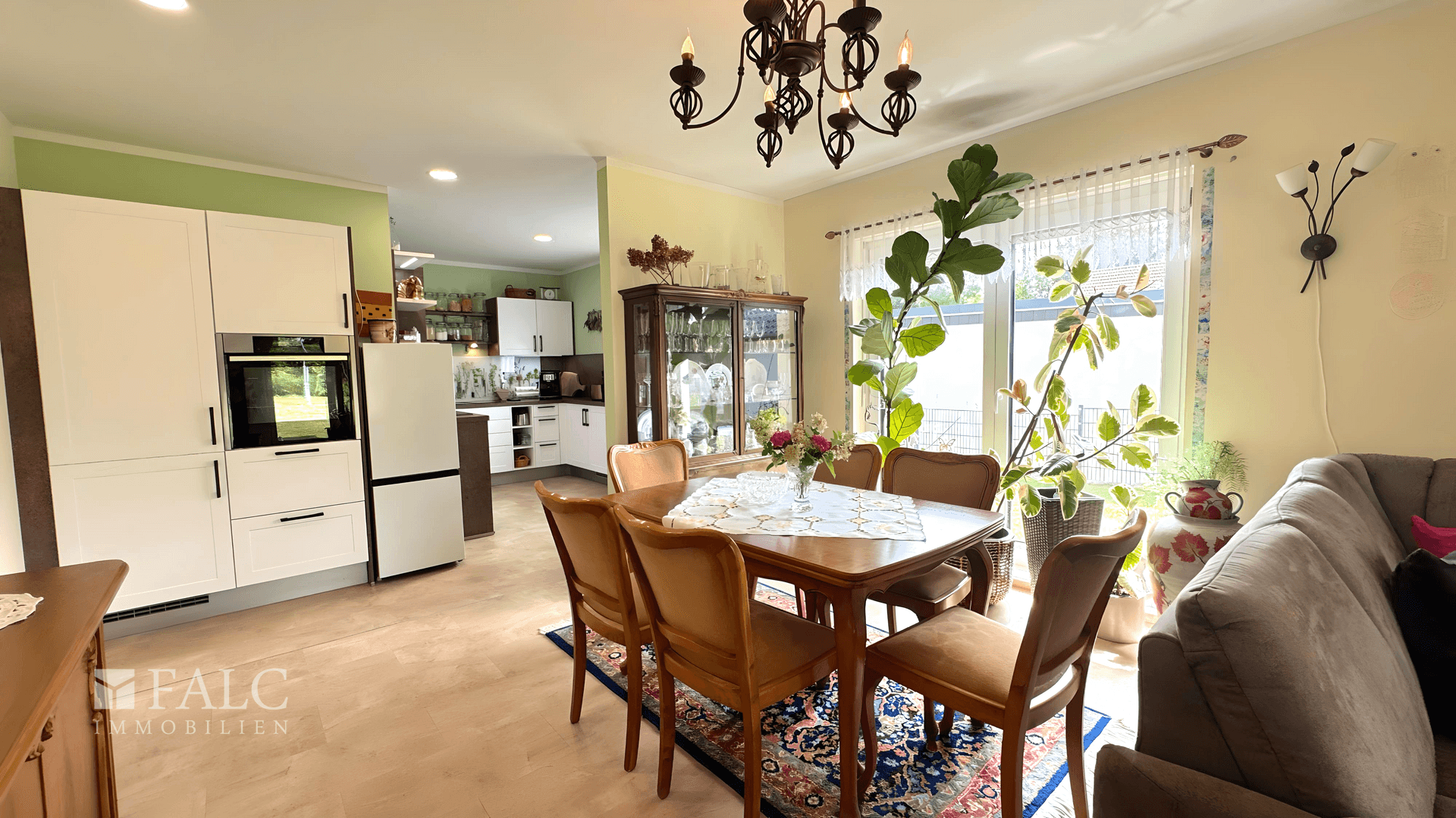 Die offene, moderne Einbauküche fügt sich nahtlos in den Wohnbereich ein und lässt dank hochwertiger Ausstattung keine Wünsche offen. Teilweise bestehen auf den verbauten Geräten sowie auf dem Haus selbst noch gültige Gewährleistungen, was zusätzliche Sicherheit bietet. Im gesamten Gebäude wurde auf hochwertigen Bodenbelag gesetzt – eine Kombination aus Fliesen und pflegeleichtem Vinyl. Eine durchgängige Fußbodenheizung sorgt für behagliche Wärme in allen Räumen.