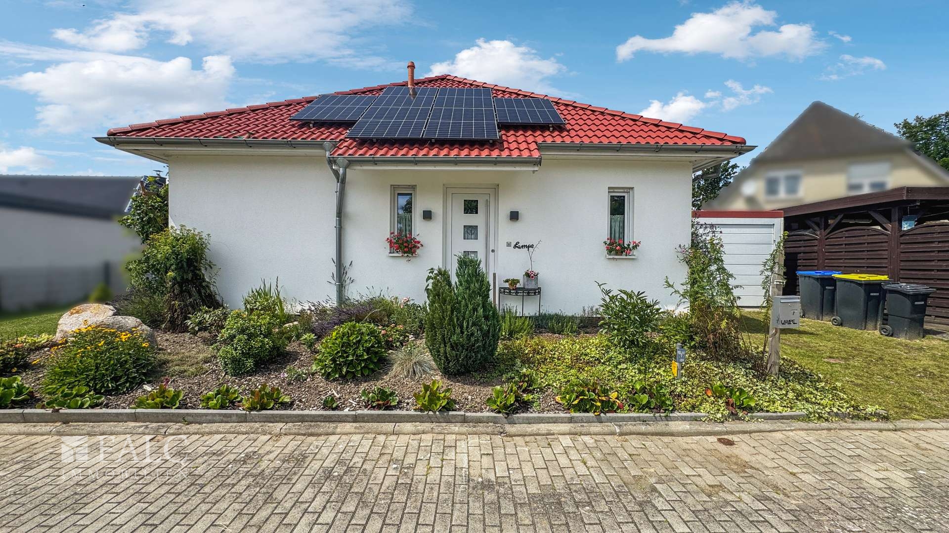 Dieses nahezu neuwertige, freistehende Einfamilienhaus im beliebten Bungalowstil wurde im Jahr 2022 in hochwertiger Bauweise von ScanHaus errichtet und vereint zeitgemäßen Wohnkomfort mit einer durchdachten Raumaufteilung auf einer Ebene. Es befindet sich auf einem liebevoll angelegten, ca. 500 m² großen Grundstück, das dem neuen Eigentümer ein hohes Maß an Privatsphäre und Lebensqualität bietet. Die Immobilie eignet sich ideal für Paare, kleine Familien oder Menschen, die barrierefreies Wohnen zu schätzen wissen.