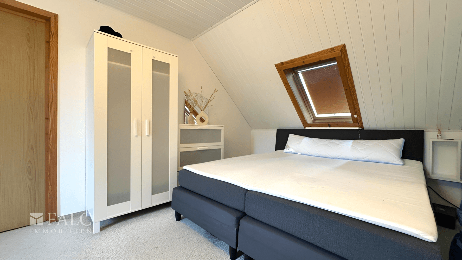 Das Dachgeschoss ist als Kaltdach ausgeführt, die oberste Geschossdecke wurde bereits gedämmt. Auch der wetterseitige Giebel erhielt eine Dämmung, sodass ein guter energetischer Grundzustand gegeben ist. Die Fenster stammen aus dem Jahr 2005, im gesamten Erdgeschoss wurden Rollläden installiert. Ein Teilkeller sorgt für zusätzliche Abstellmöglichkeiten, während der Dachboden weiteren Stauraum bereithält.