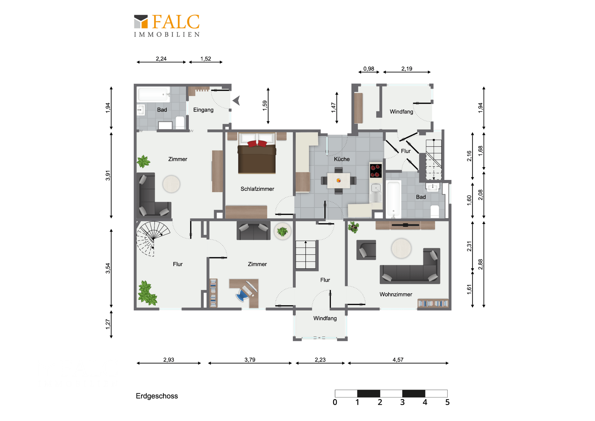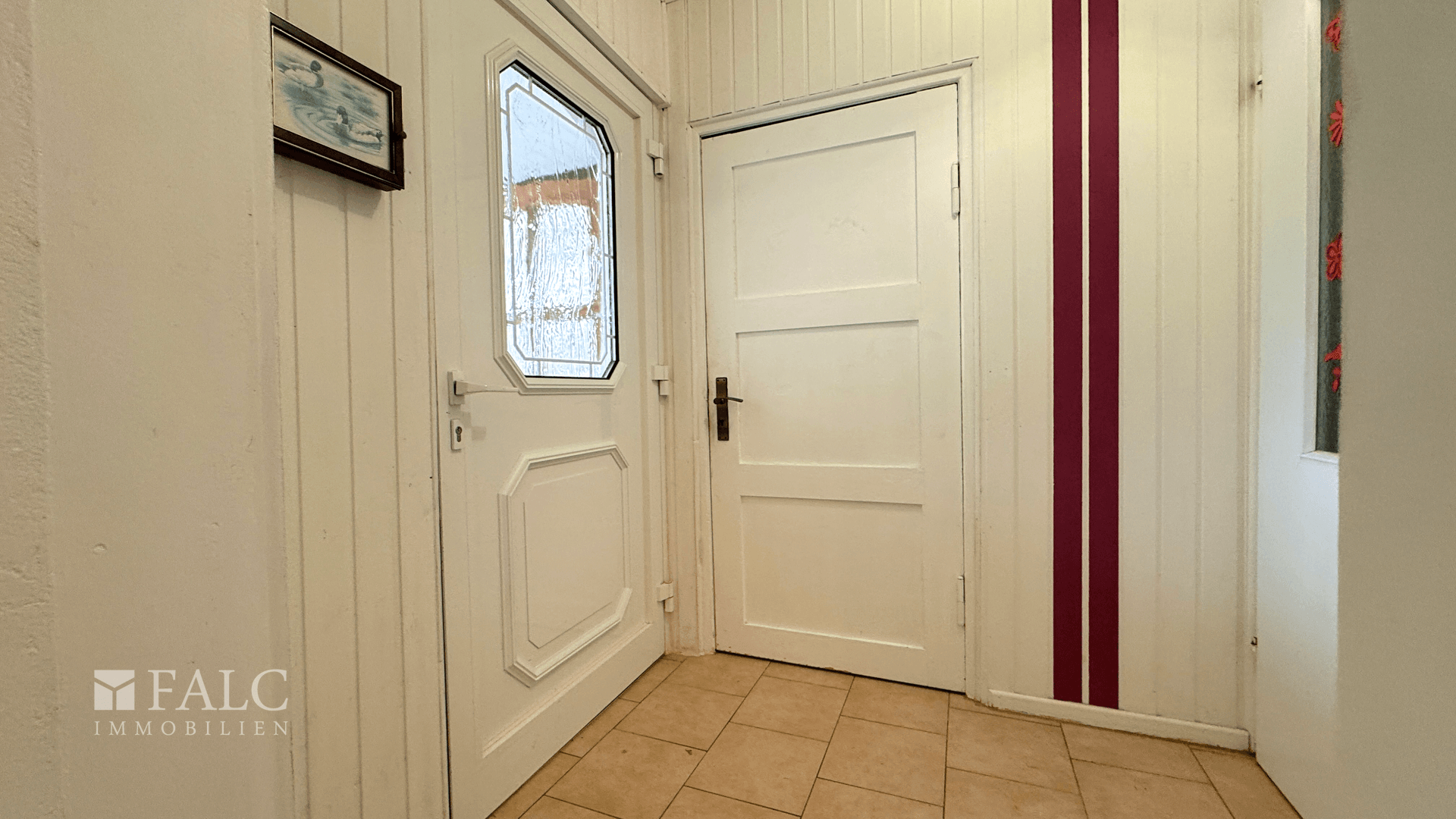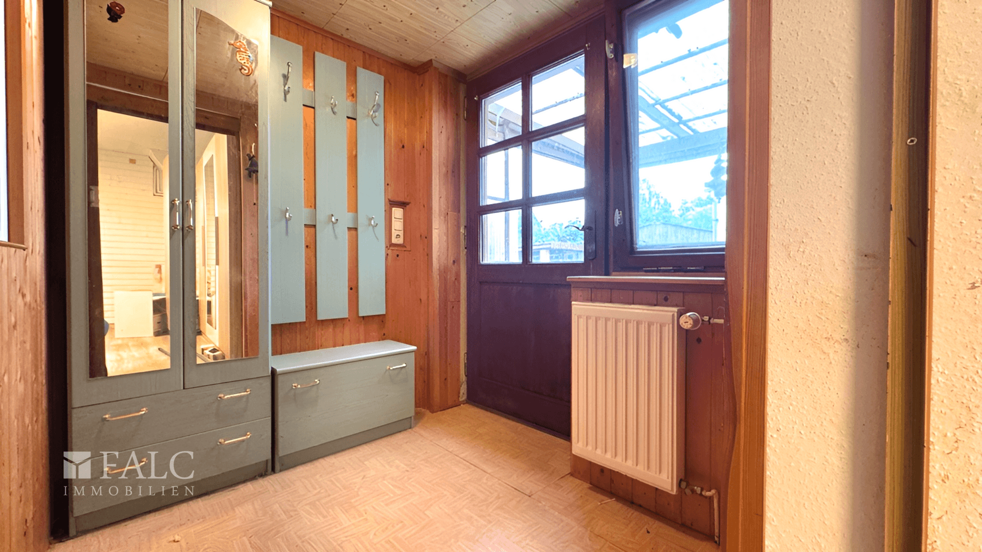 * zwei hintere Eingänge (einer mit Windfang), zusätzlicher Windfang am Hauseingang