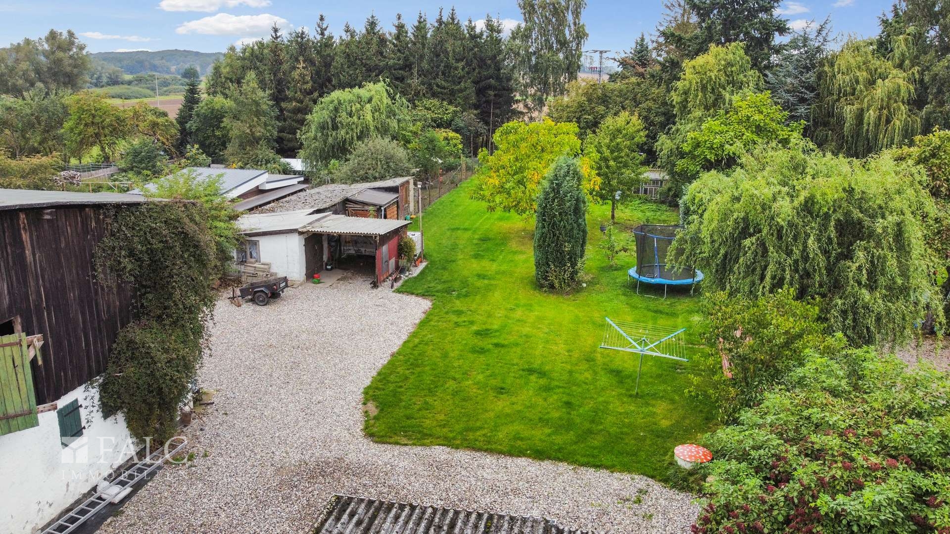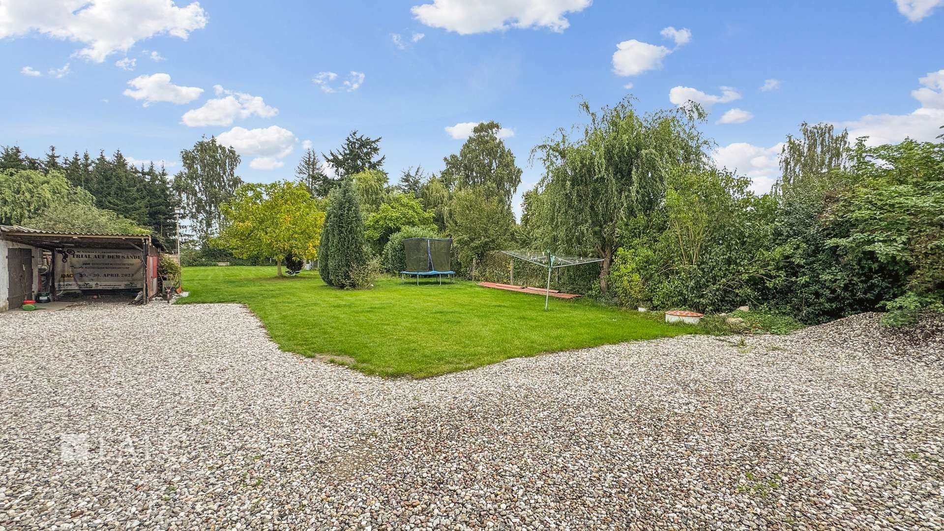Das Haus befindet sich auf einem beeindruckenden, vollständig eingezäunten Grundstück mit einer Größe von 1.958 m², das sich ideal für Tierhaltung eignet. Die Lage am Feldrand sorgt nicht nur für herrliche Weitblicke, sondern bietet auch eine ruhige und naturnahe Wohnatmosphäre. Neben dem Haupthaus stehen ein großer Stall, ein weiteres kleineres Stallgebäude sowie ein älteres Gewächshaus zur Verfügung. Eine Garage und eine Waschküche im Nebengebäude ergänzen das großzügige Platzangebot.