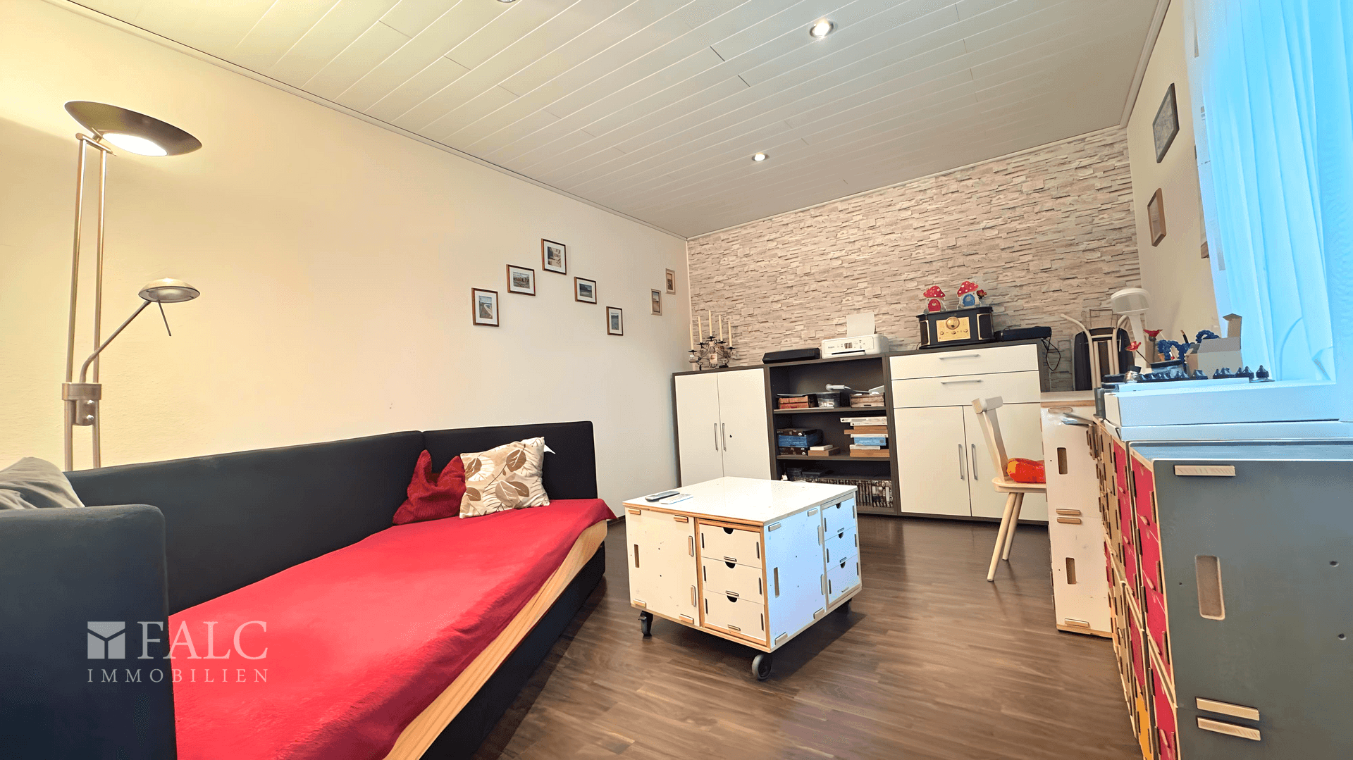 * Großes, ausgebautes Zimmer im Obergeschoss mit Abstellnische (teilbar in Wohn-/Schlafbereich)