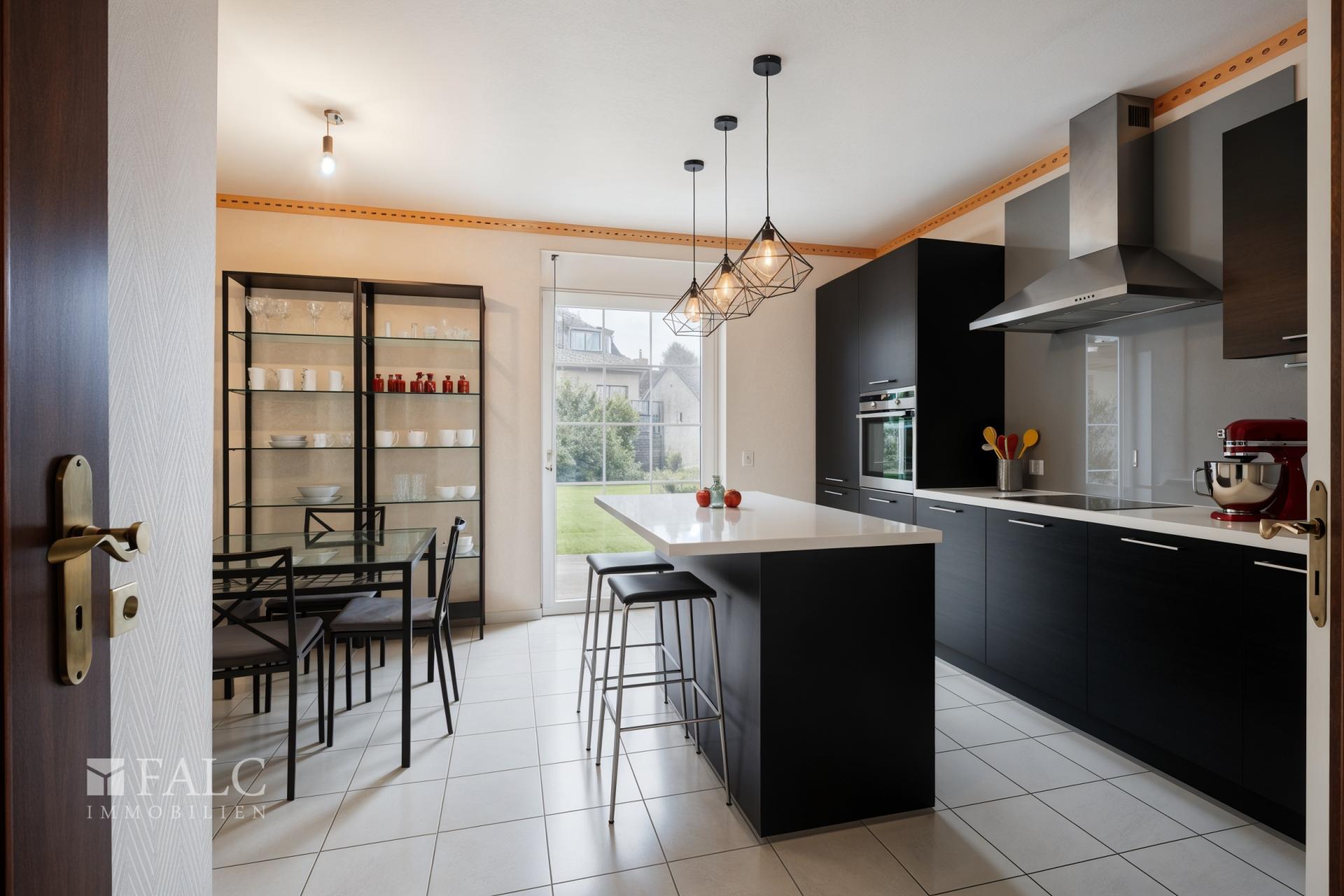 Der Wohn- und Essbereich überzeugt durch seine angenehme Größe sowie den direkten Zugang zu einer der beiden Terrassen, die zum Entspannen und Genießen einladen. Im Erdgeschoss befindet sich zudem ein praktisches Gäste-WC. Von der Küche gibt es einen direkten Zugang zum Garten.