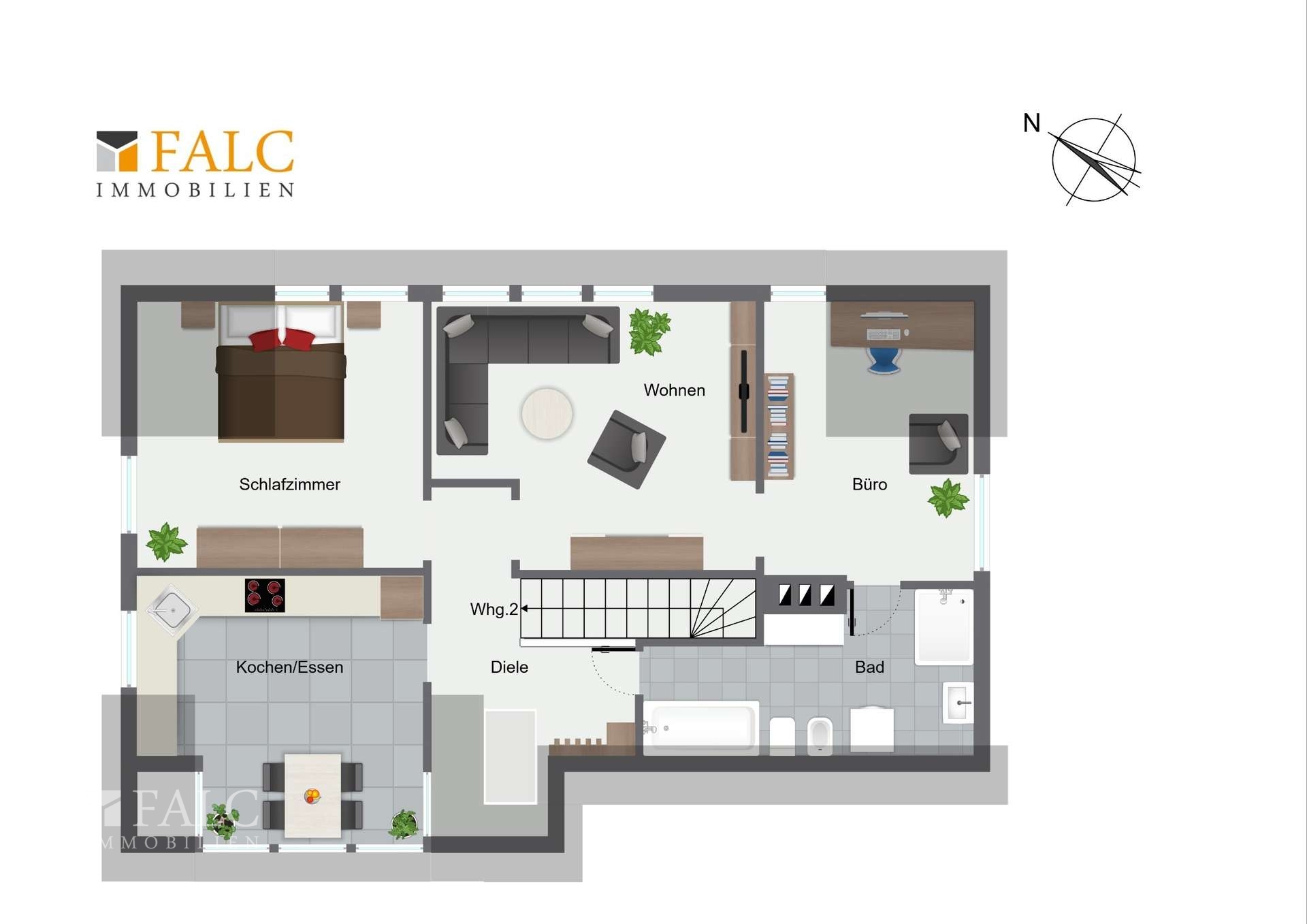 Die Wohnung im Obergeschoss ist dauerhaft vermietet – Details zur Miethöhe erhalten Sie gerne auf Anfrage.