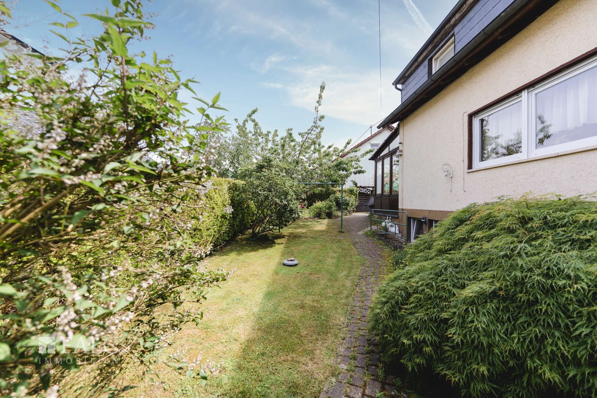 Die zweite Wohneinheit wurde 2003 neu ausgebaut und verfügt über eine eigene Erschließung sowie ca. 71 m² Wohnfläche. Diese Einheit ist aktuell zuverlässig vermietet. Eine Garage mit vorgelagertem Stellplatz gehört ebenfalls zum Angebot.