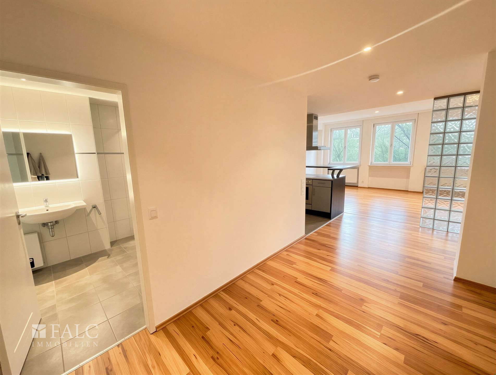 Bereits beim Betreten der Wohnung empfängt Sie ein großzügiger Eingangsbereich mit ausreichend Platz für Garderobe und zusätzliche Stauraumlösungen.