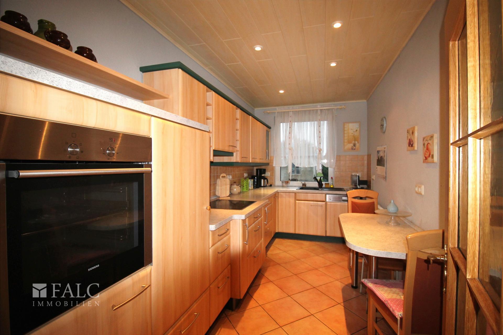 Das Haus verfügt über insgesamt 6 Zimmer, darunter 3 Schlafzimmer, die sich auf einer Ebene befinden. Die Küche ist mit einer Einbauküche ausgestattet und bietet ausreichend Platz für einen Essbereich. Das geräumige Wohnzimmer mit großen Fenstern sorgt für viel Tageslicht und einen schönen Ausblick in den gepflegten Garten.
