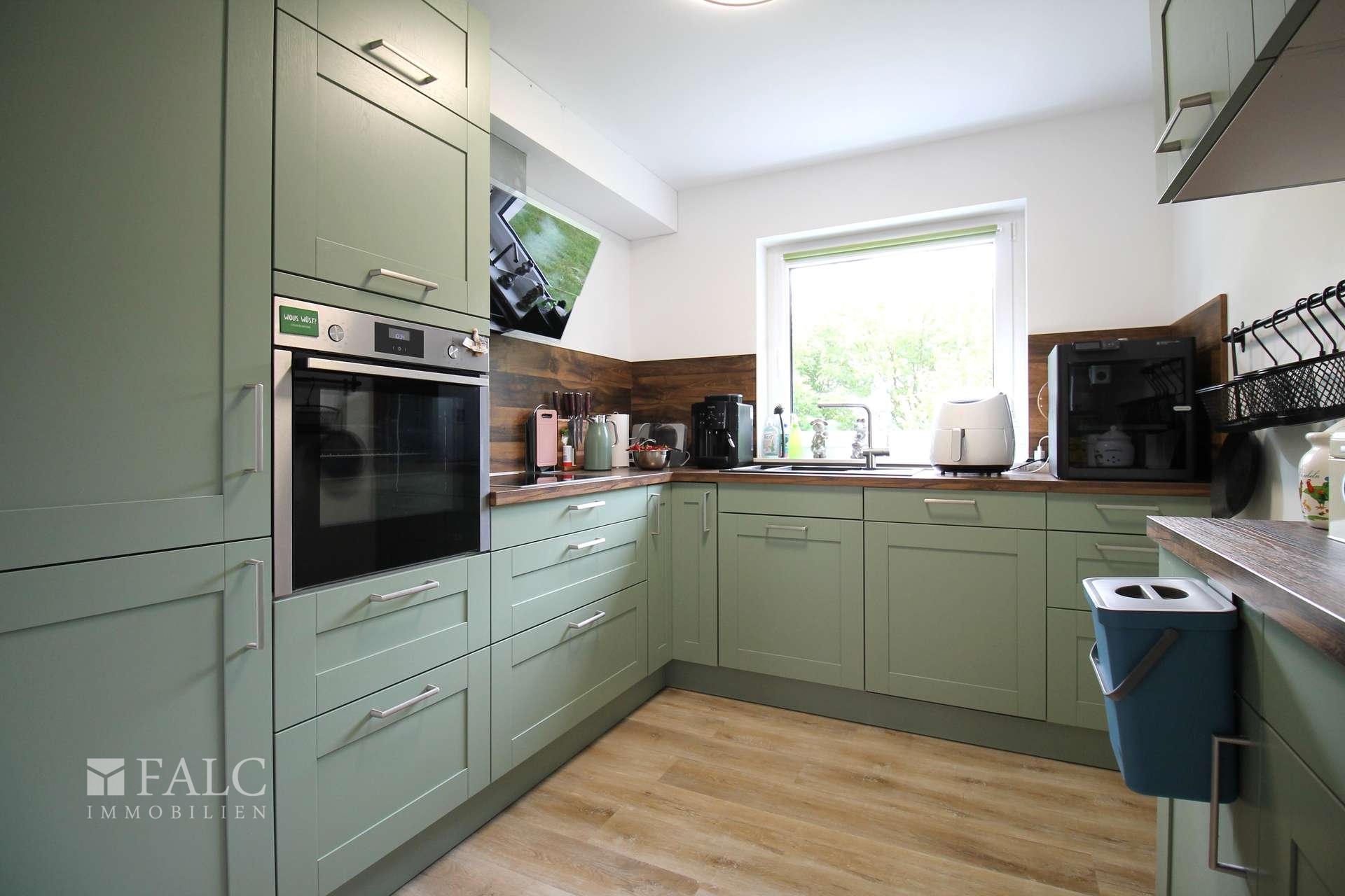 Die Küche ist modern ausgestattet und bietet viel Stauraum sowie alle notwendigen Geräte für den täglichen Bedarf. Ein Gäste-WC im Erdgeschoss sorgt für zusätzlichen Komfort.