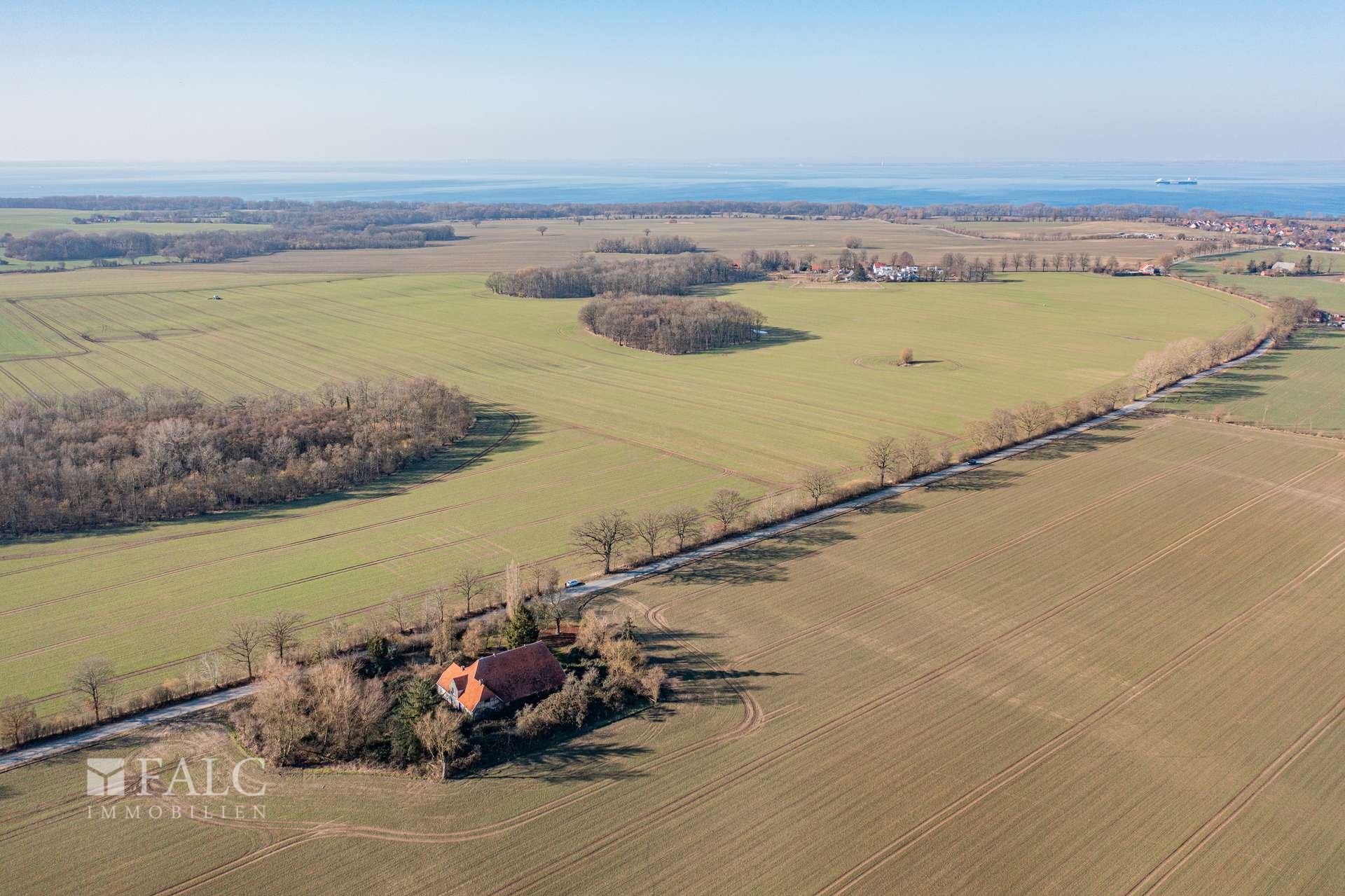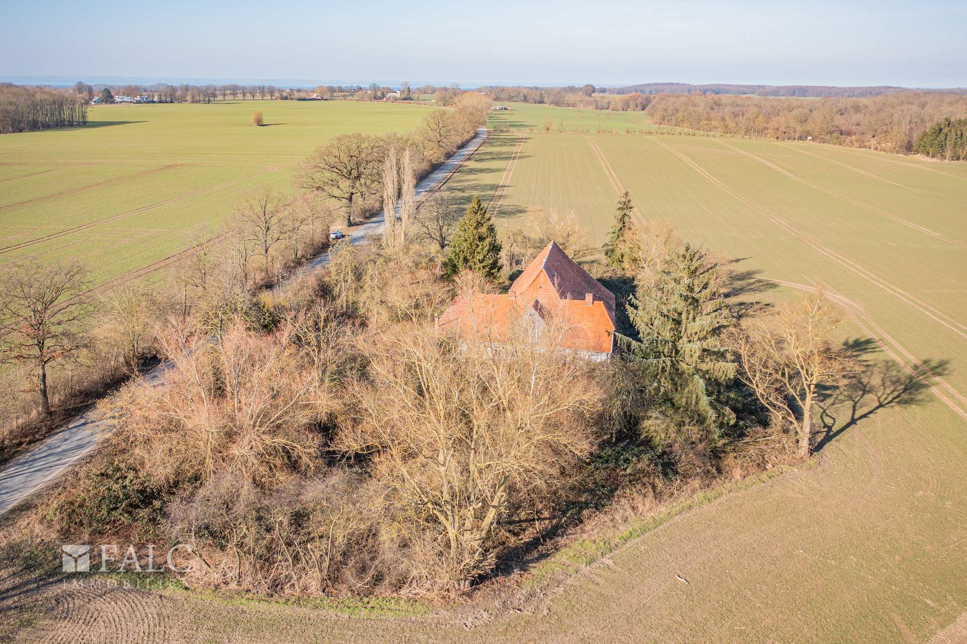 Hier leben Sie in vollkommener Privatsphäre. Die Immobilie ist eingebettet in ein Landschaftsschutzgebiet, das durch weite Felder, alte Alleen und die typische Ruhe der Küste geprägt ist. Wer Abgeschiedenheit sucht, ohne auf die Vorzüge einer erstklassigen Infrastruktur verzichten zu wollen, wird hier sein Paradies finden.