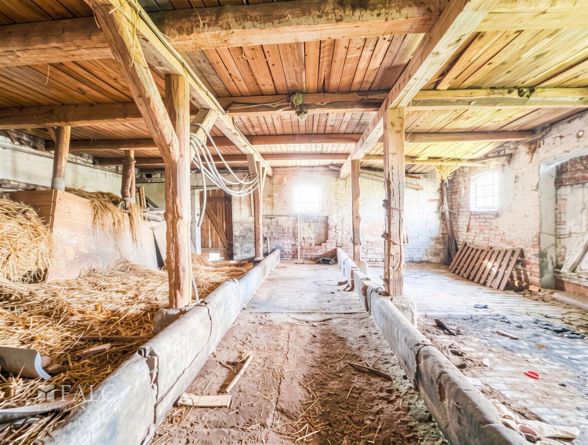 * Tierhaltung: Die weitläufigen Außenflächen und Stallungen sind ideal für Pferde, Schafe oder eine autarke Lebensweise.