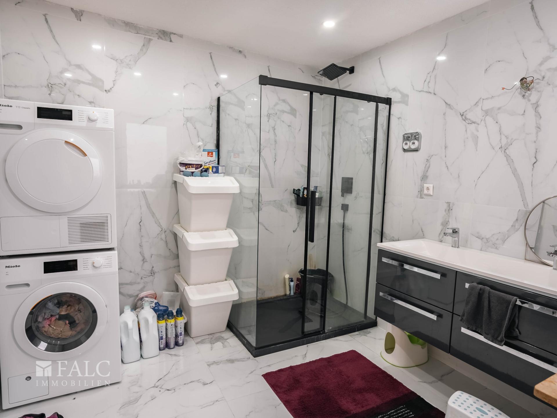 - Badezimmer mit Dusche und Waschmaschinenanschluss