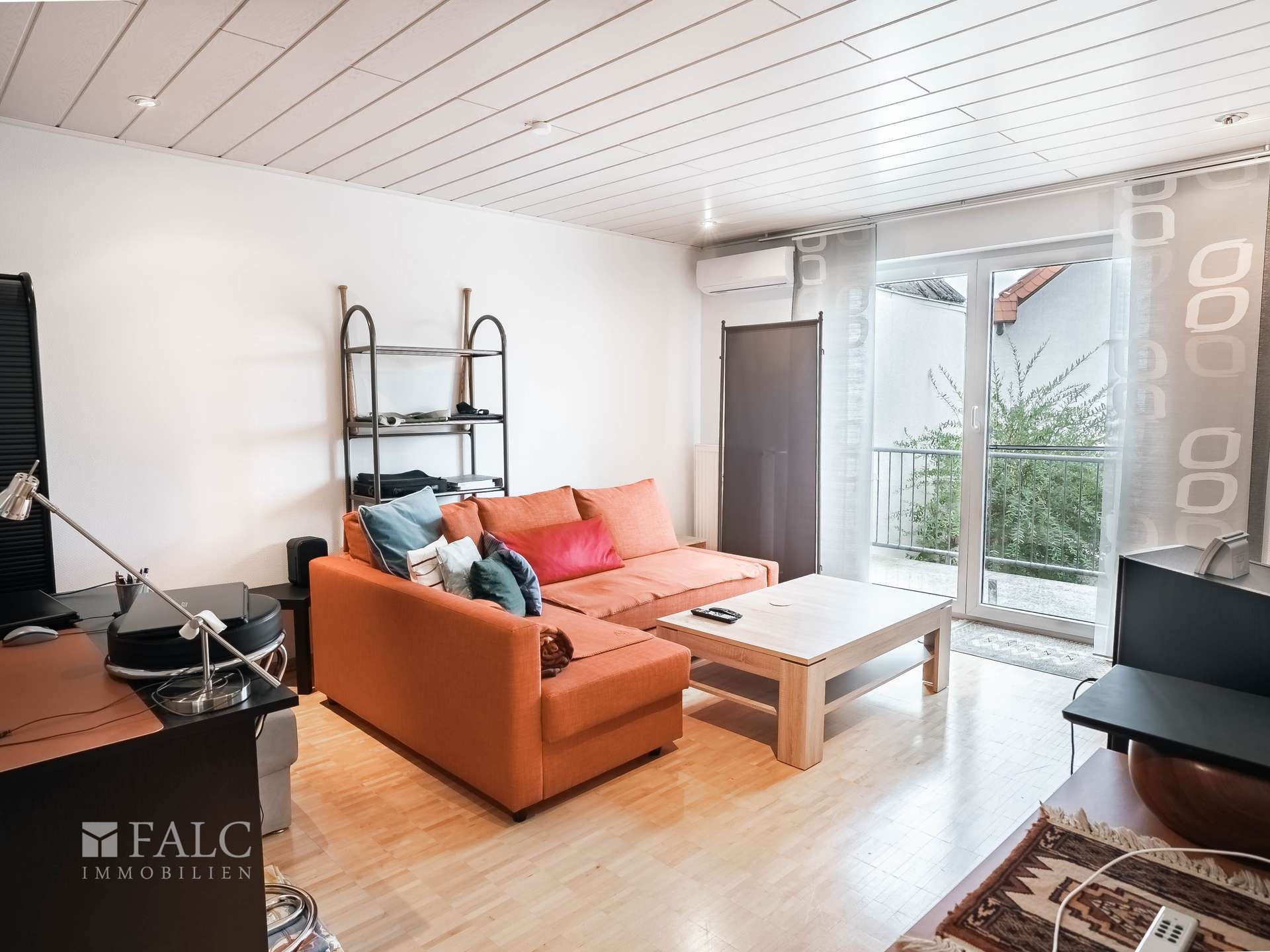 Das Wohnzimmer ist hell und freundlich gestaltet und verfügt über einen direkten Zugang zum Balkon. Dieser bietet Ihnen die Möglichkeit, die frische Luft zu genießen und einen gemütlichen Außenbereich zu gestalten. Der Balkon ist ideal für entspannte Stunden im Freien oder ein gemeinsames Frühstück an der frischen Luft.