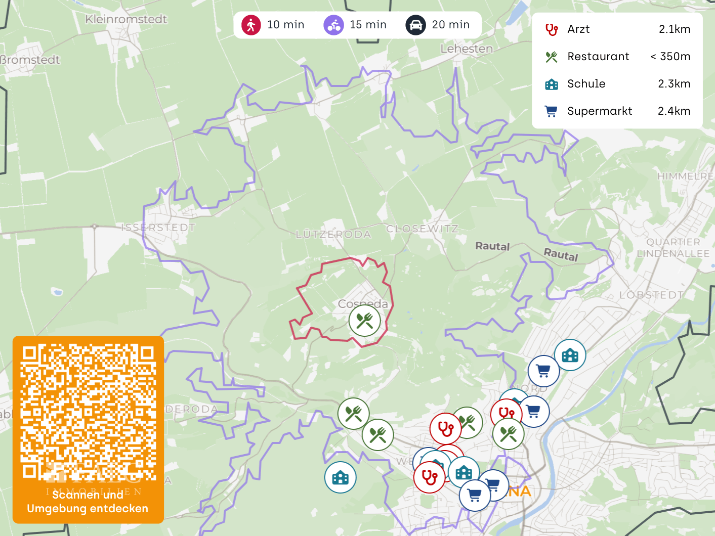 Der Jenaer Ortsteil Cospeda ist umgeben von der Natur und trotzdem gut an die Innenstadt sowie die umliegenden Orte angebunden. Dies macht ihn für Berufspendler ebenso attraktiv wie für Studenten oder einfach Ruhesuchende, die auf eine gute infrastrukturelle Anbindung Wert legen.