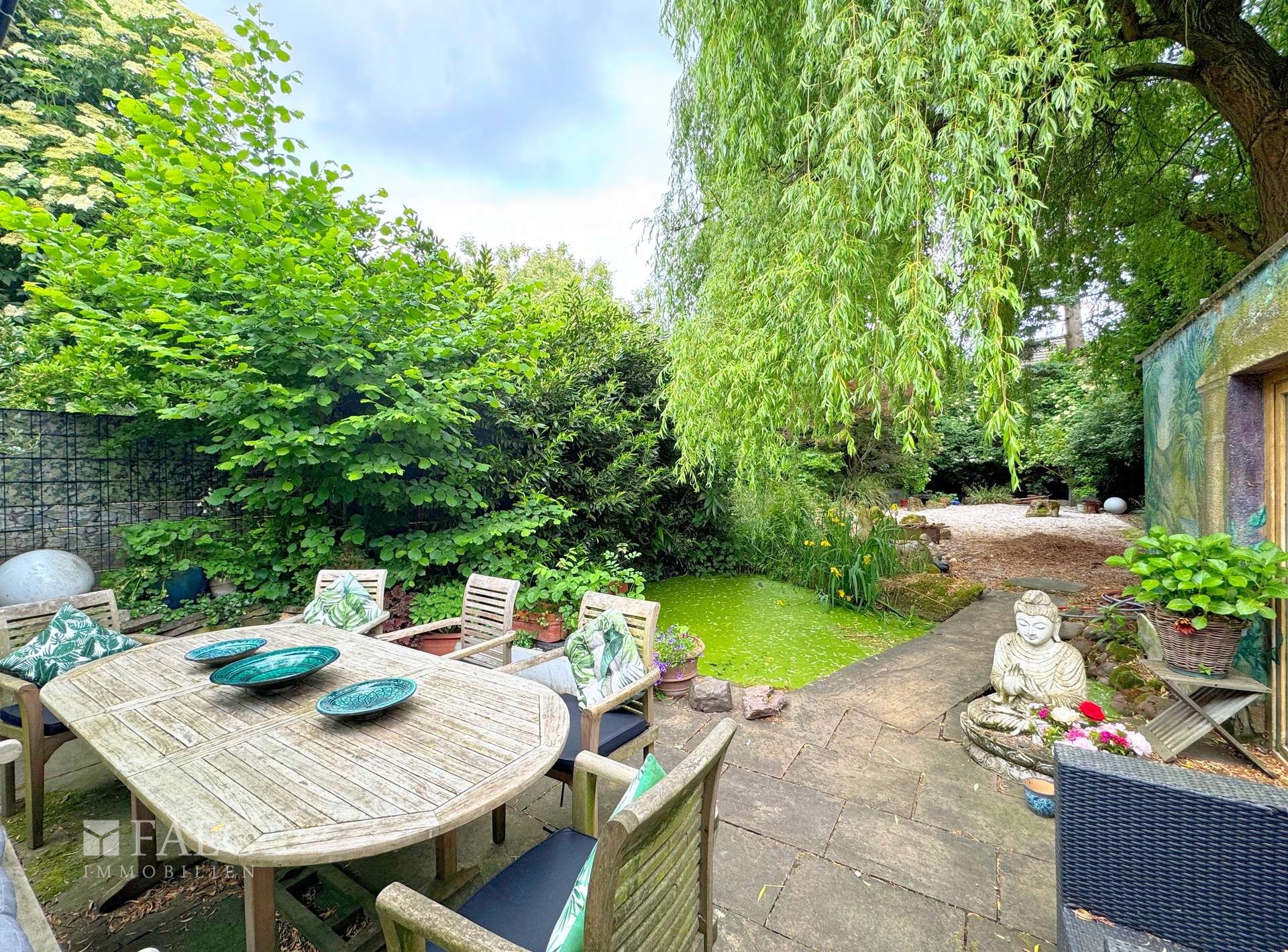 Der liebevoll angelegte Garten mit Teich lädt zum Entspannen ein und bietet viel Raum für Freizeitaktivitäten im Freien.