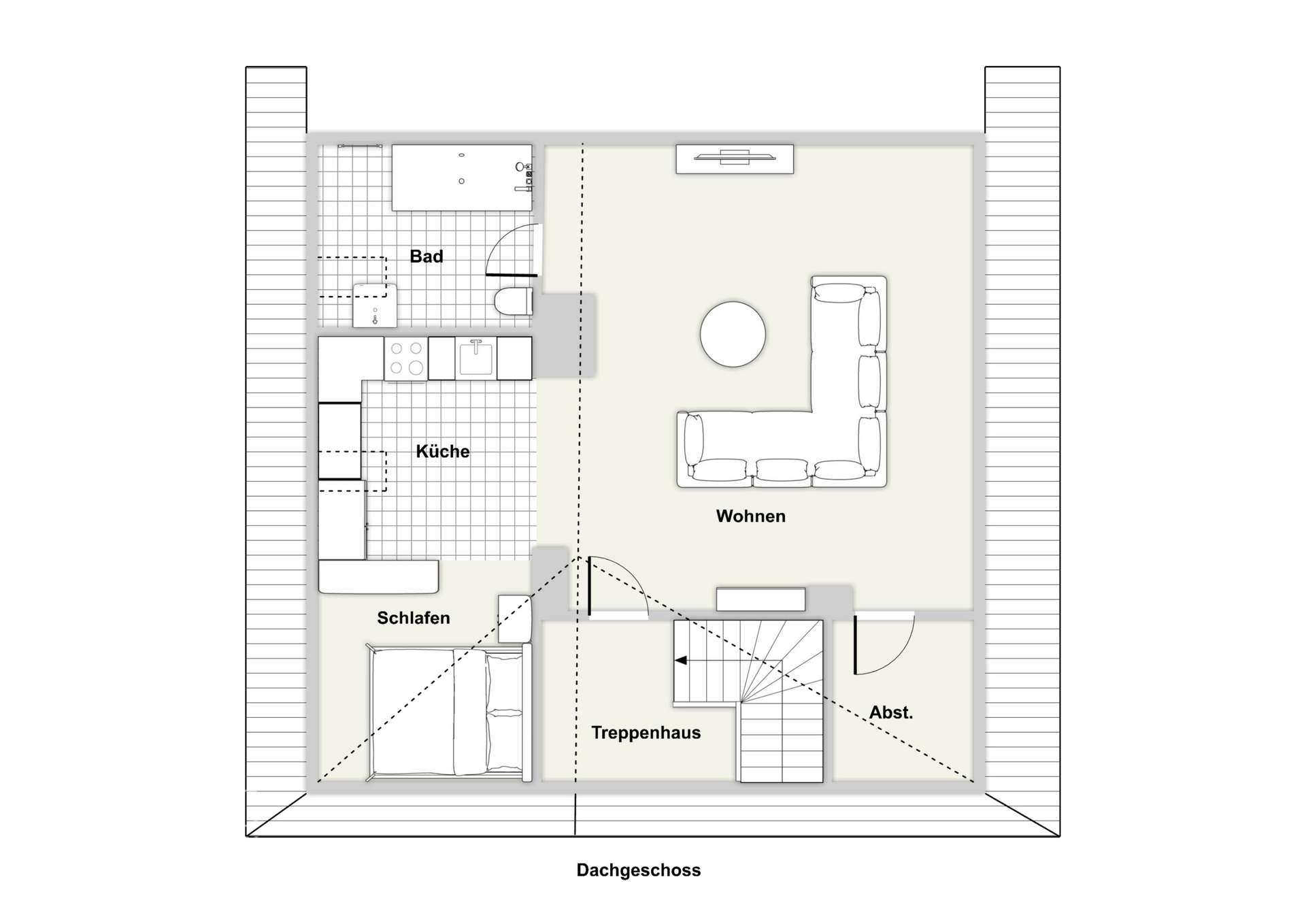 -Dachgeschoss: ca. 44 m² wohnrelevante Nutzfläche