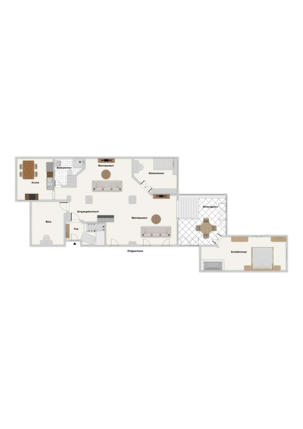 Im Erdgeschoss der Immobilie erwartet Sie ein durchdachter Grundriss mit 4 einladenden Zimmern. Eines davon dient derzeit als Schlafzimmer, ein weiteres als Büro, während das großzügige Wohnzimmer mit stilvollem Kamin und viel Tageslicht den perfekten Ort für entspannte Stunden bietet. Ein Highlight ist der lichtdurchflutete Wintergarten, der nicht nur eine wunderbare Verbindung zum Außenbereich schafft, sondern auch Zugang zu einem weiteren besonderen Raum eröffnet: Ein beheizter Hobby- bzw. Lagerraum, der mit Badewanne und Waschbecken ausgestattet ist. Diese wohnrelevante Nutzfläche eröffnet vielfältige Nutzungsmöglichkeiten. Der liebevoll angelegte Garten mit herrlicher Ostterrasse, idyllischem Teich und zahlreichen Rückzugsmöglichkeiten – ideal für Gartenfreunde, Familien oder Genießer der Morgensonne. Die geschmackvolle Wohnküche der renommierten Marke Alno überzeugt nicht nur mit ihrem modernen Design und durchdachter Ausstattung, sondern lädt mit ihrer wohnlichen Atmosphäre zum gemeinsamen Kochen, Genießen und Verweilen ein. Ein integriertes Klimagerät sorgt auch an warmen Tagen für ein angenehmes Raumklima.