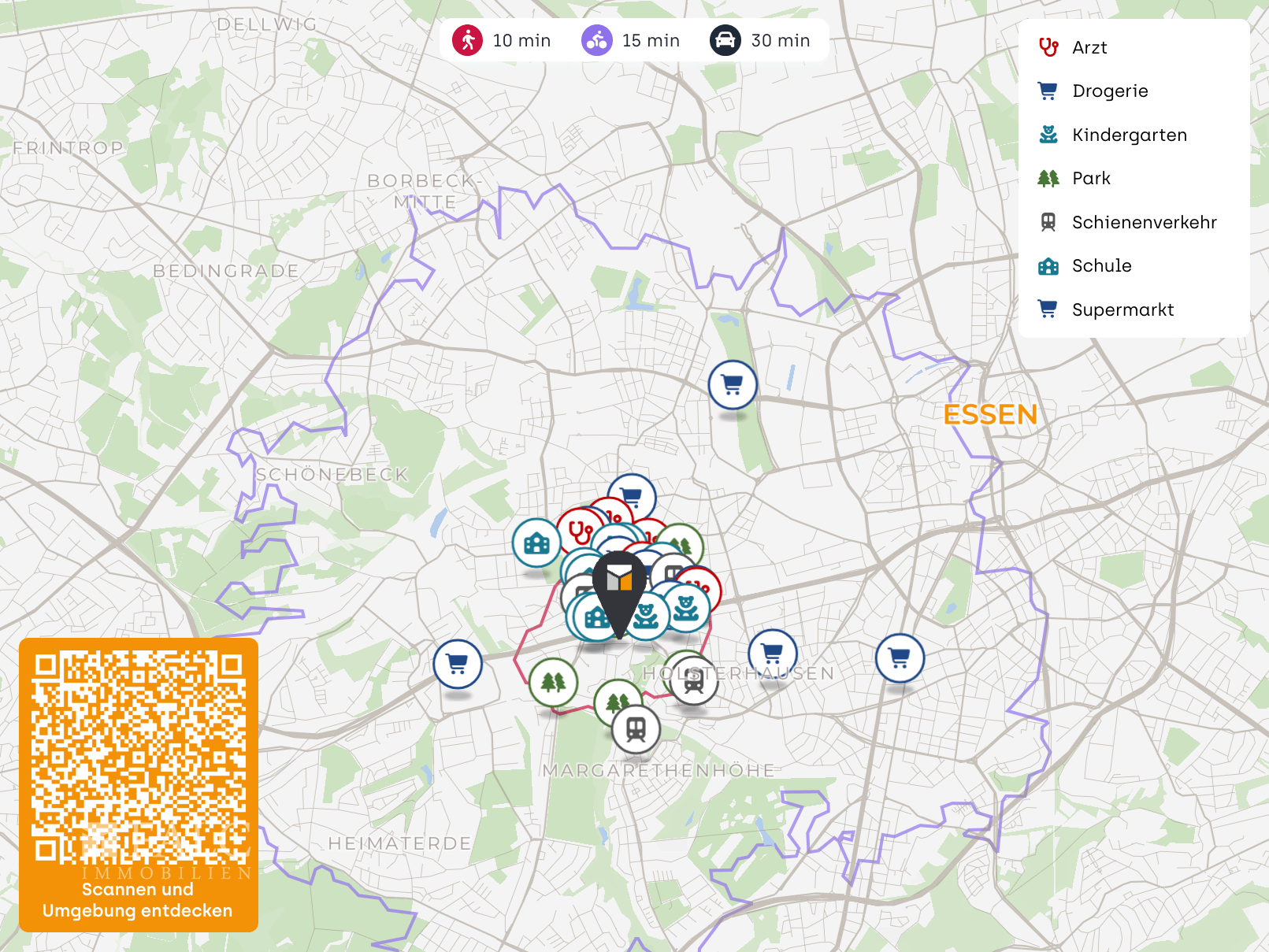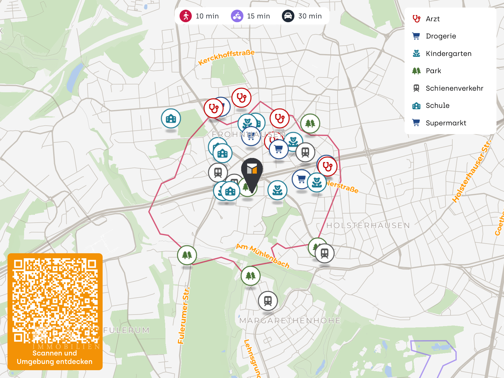 Die Wohnung befindet sich im Stadtteil Essen-Frohnhausen, einer zentralen und gut angebundenen Wohnlage westlich der Essener Innenstadt.