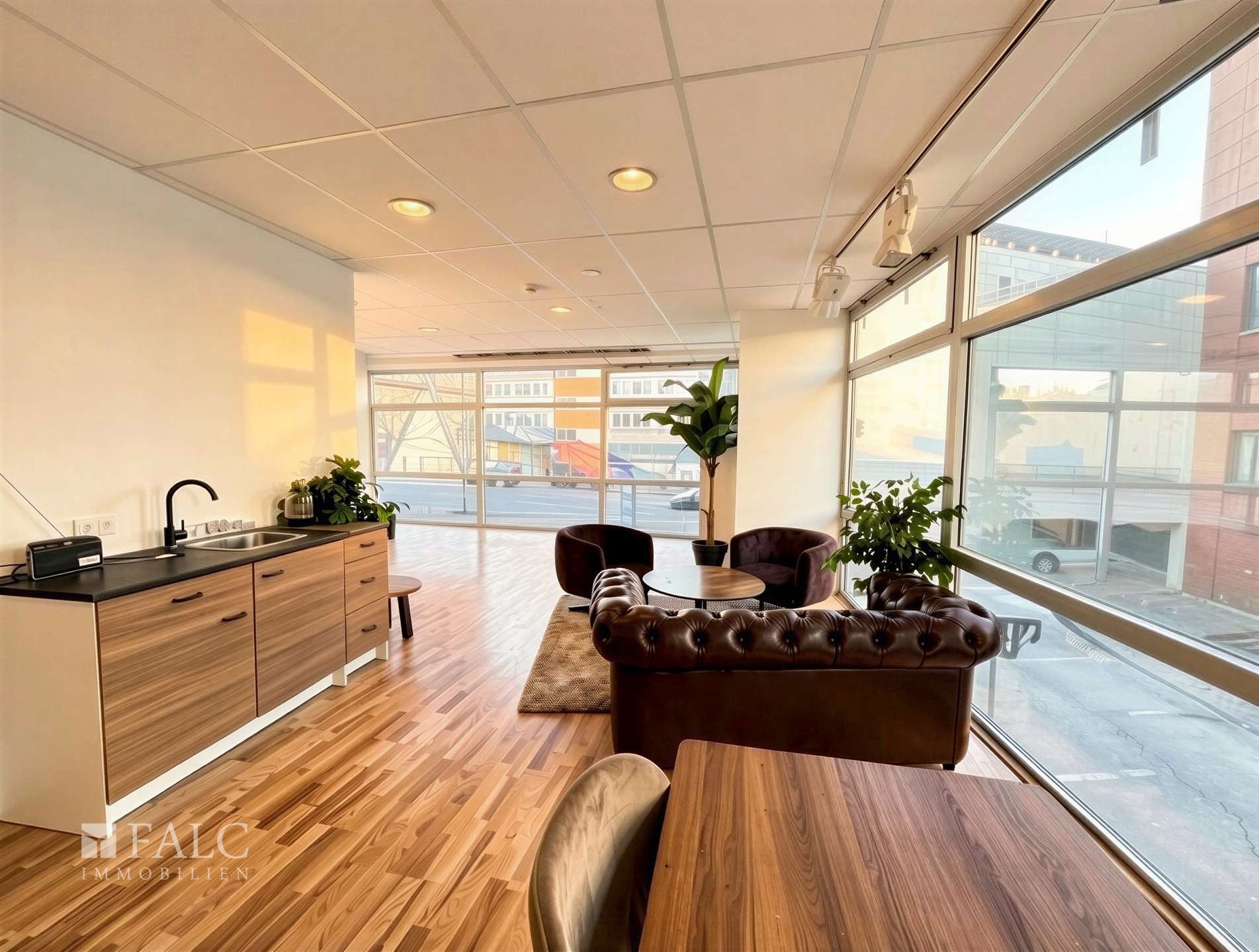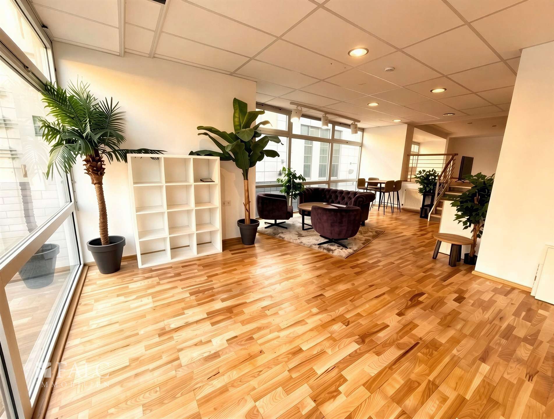 Besonders hervorzuheben ist die außergewöhnliche Sichtbarkeit der Immobilie: Mit einer Hausfront von über 30 Metern bietet das Objekt eine hohe Präsenz im Straßenbild und damit eine ausgezeichnete Werbewirksamkeit für Ihr Unternehmen. Großzügige, raumhohe Fenster sorgen zusätzlich für viel Tageslicht und eine moderne, offene Atmosphäre.