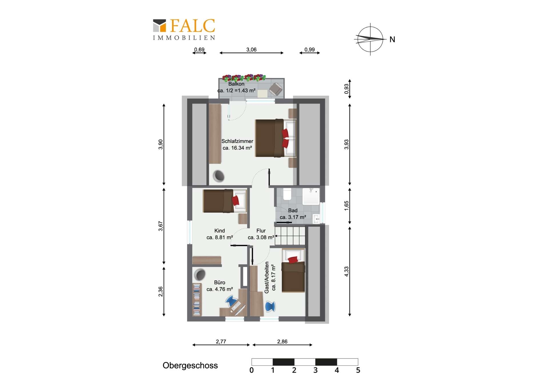 Hier bieten Ihnen drei weitere helle Zimmer Platz für Ihre individuellen Wohnwünsche. Sie können Sie als Kinder- Schlaf- oder Gästezimmer oder auch als Büro nutzen.