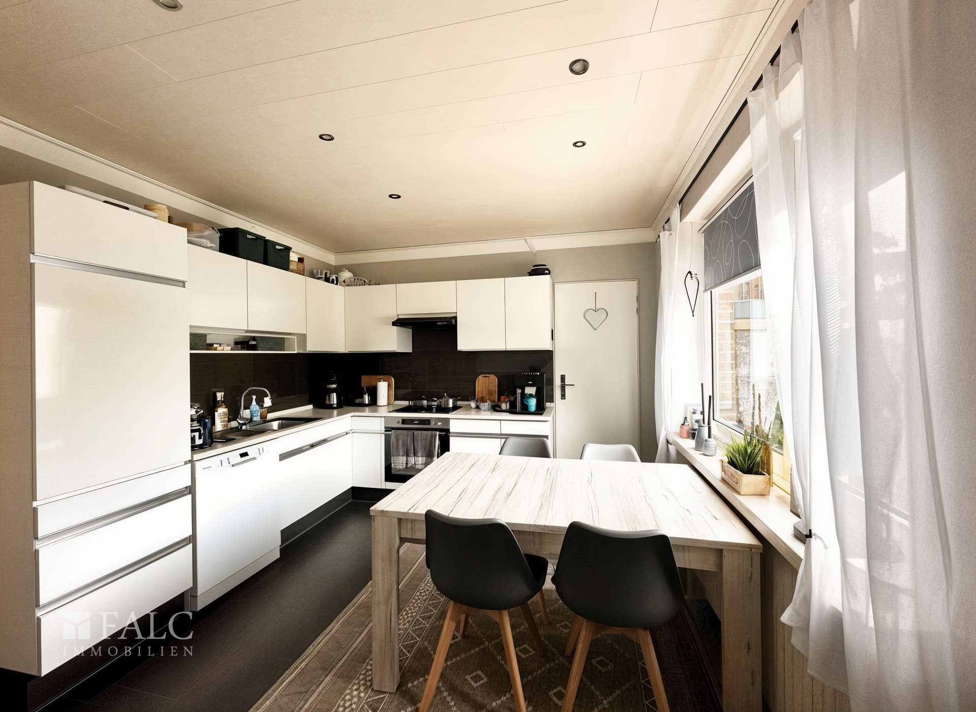 Herzstück des Erdgeschosses ist die gemütliche und zeitlose Küche. Sie ist mit einer weißen Einbauküche und einer kleinen Speisekammer ausgestattet. Von der Küche haben Sie direkten Zugang zum praktischen Hauswirtschaftsraum, der über eine Außentür zum Garten verfügt.