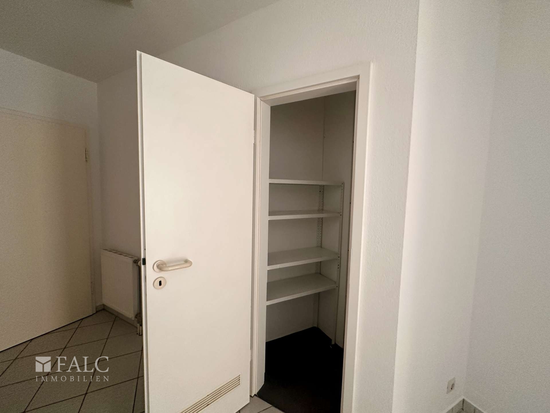Stauraum befindet sich in dem kleinen Abstellraum mit Einbauregalen. Hier ist Platz für Jegliches.