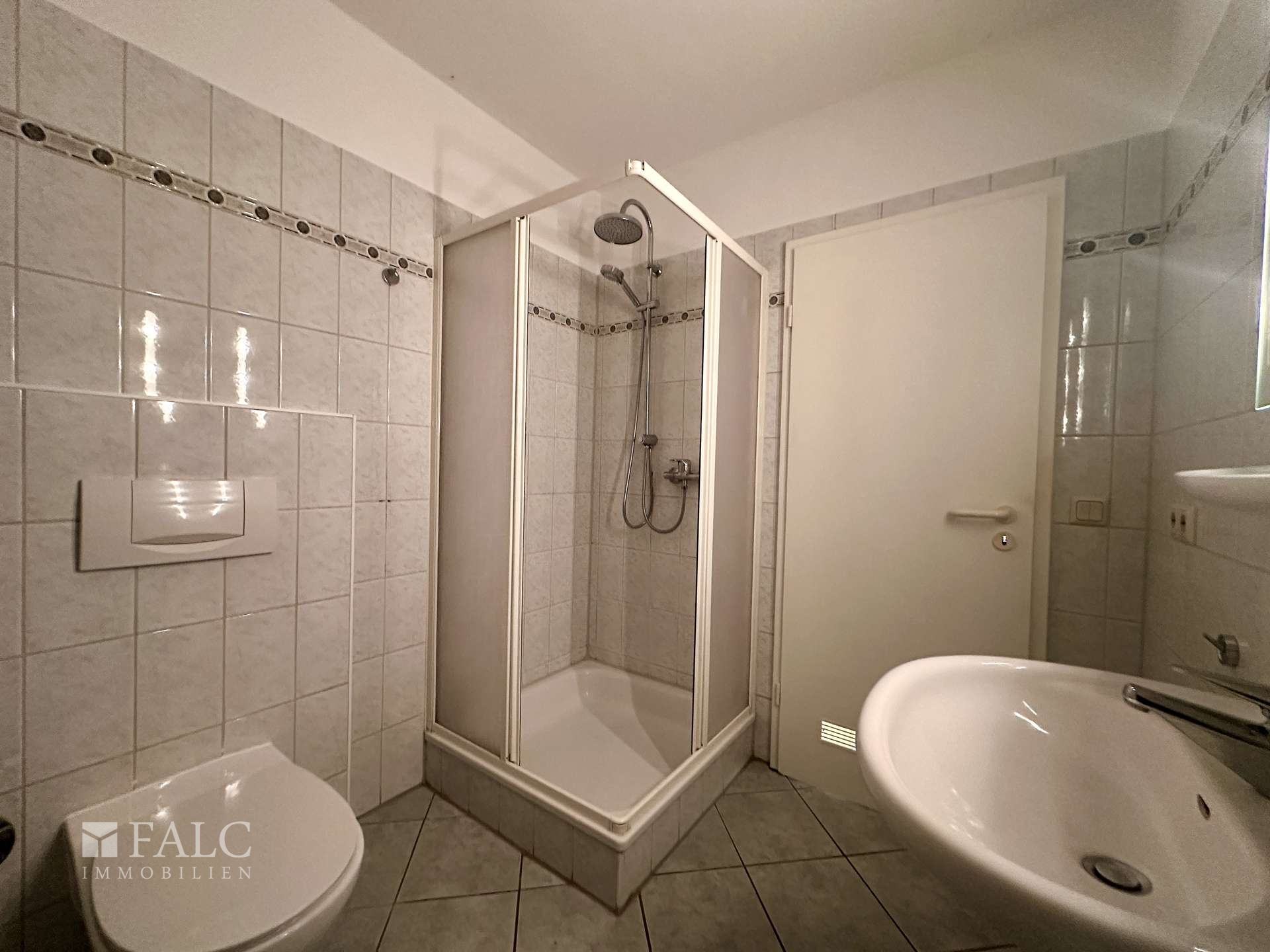 Das Bad verfügt über eine Dusche, ein WC, ein Waschbecken und einen Waschmaschinenanschluss und rundet das Platzangebot wunderbar ab.
